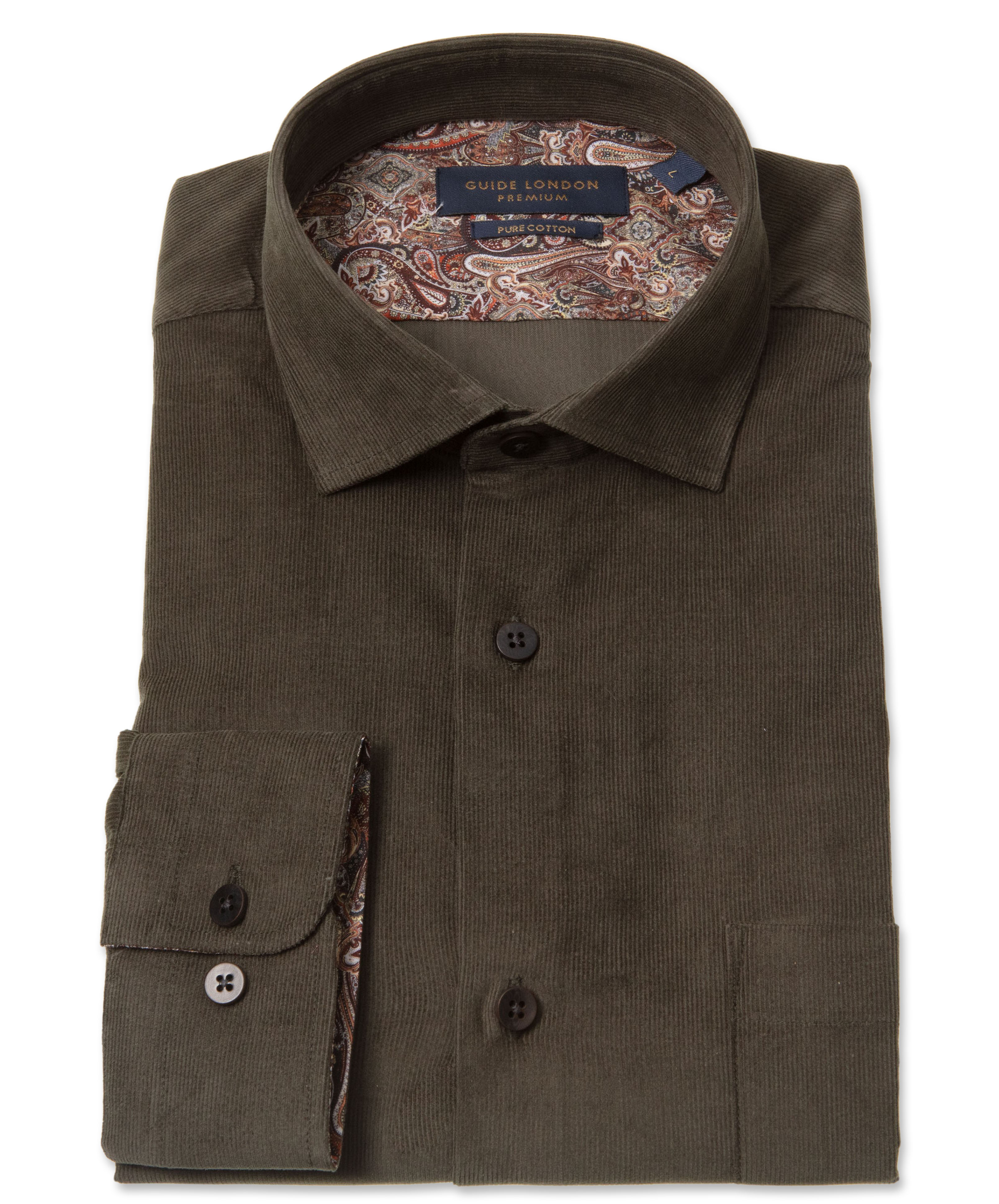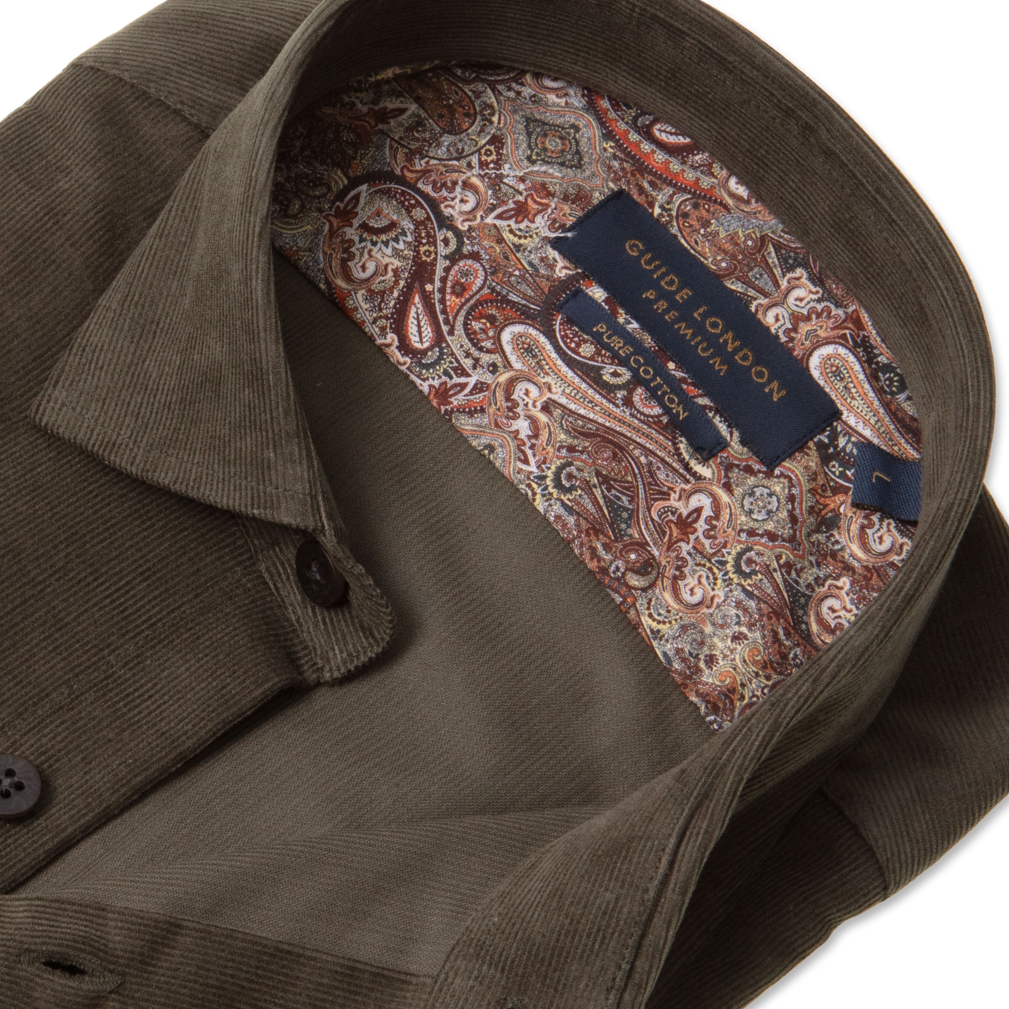 Elevate your wardrobe with this long sleeve shirt crafted from 100% cotton corduroy fabric, designed for both comfort and style. Featuring a sophisticated paisley design in the inner lining and cuffs, this shirt offers a delightful pop of pattern that adds personality to any outfit.