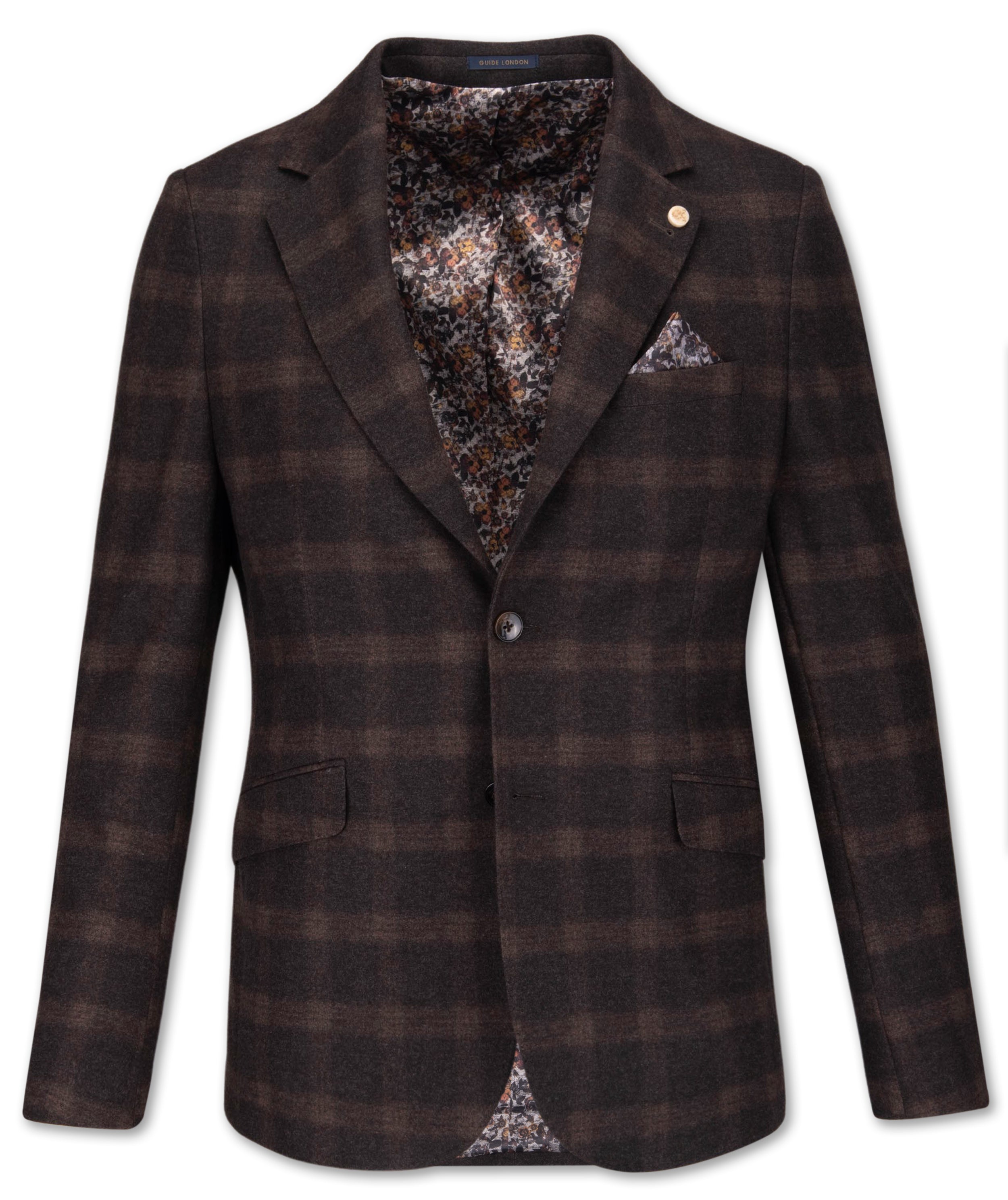 Elevate your outerwear game with our checked jacket in rich brown tones. Designed with a modern fit, this jacket offers a blend of timeless style and playful detailing. The fun floral lining adds a touch of personality, while the matching pocket square ties the look together perfectly. Ideal for both formal events and smart-casual outings, this jacket effortlessly combines classic sophistication with a unique twist.