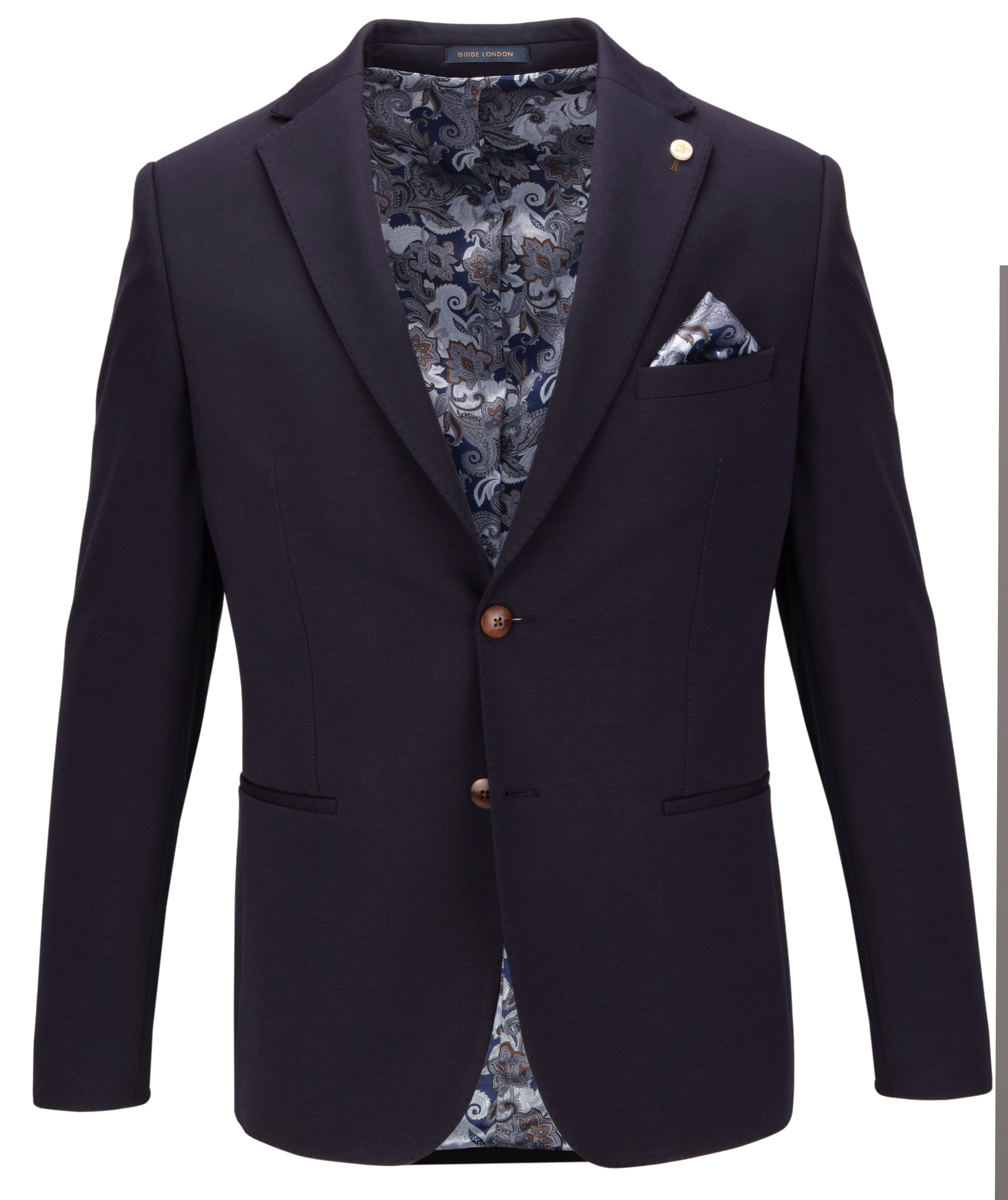 Featuring a single breasted design with button fastening, a bold paisley printed lining, lapel and finished with the signature Guide London pin.
