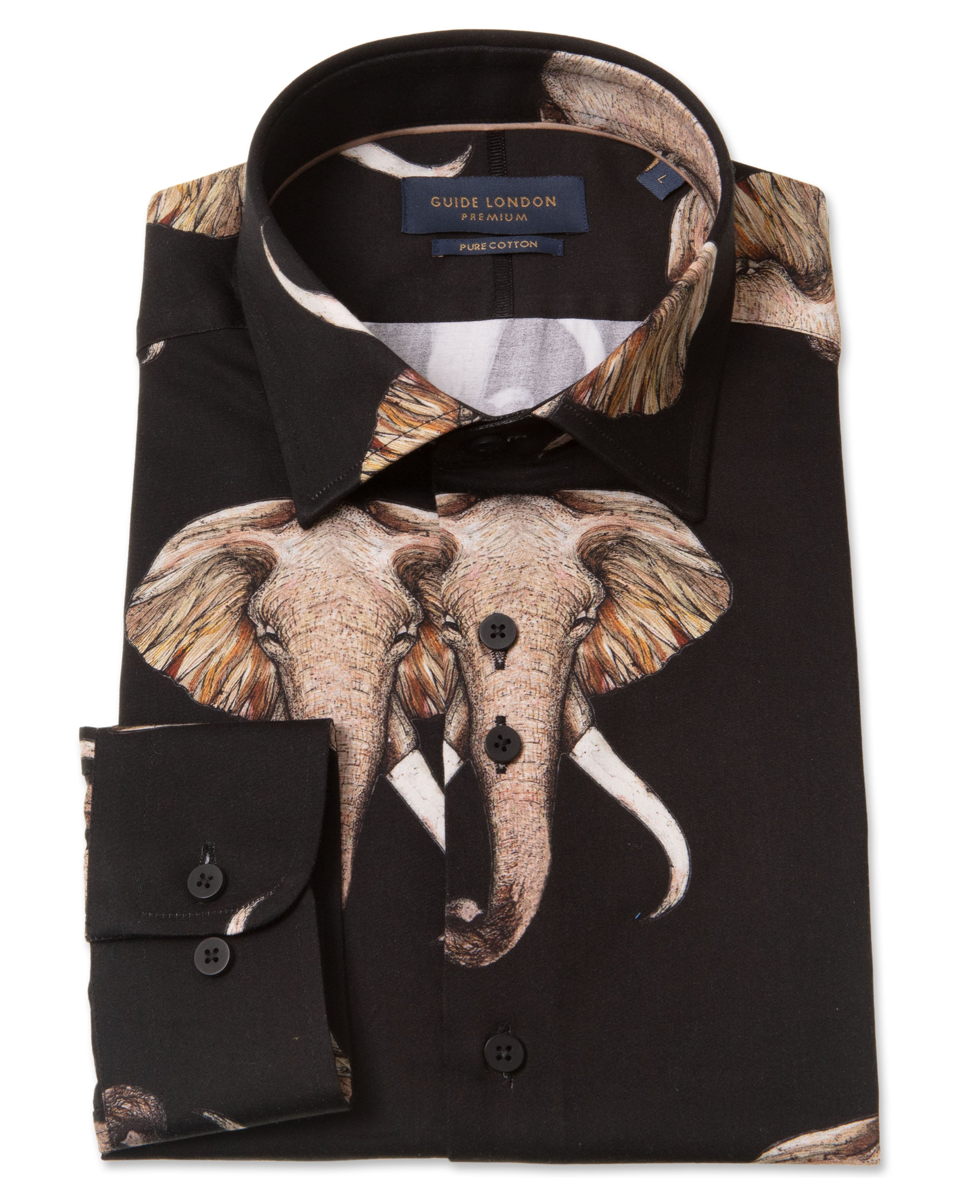 Make a bold statement with our Men's Long Sleeve Shirt, featuring a striking elephant pattern on a sleek black background. Crafted from soft, breathable fabric, this shirt blends comfort with a unique, eye-catching design. The intricate elephant motif adds a playful yet refined touch, perfect for those who appreciate standout style. Whether you're dressing it up for an event or keeping it casual, this shirt offers versatility with a dash of personality. Pair it with jeans or tailored trousers for a look that’s as bold as it is timeless. Ideal for the modern man who likes to stand out.