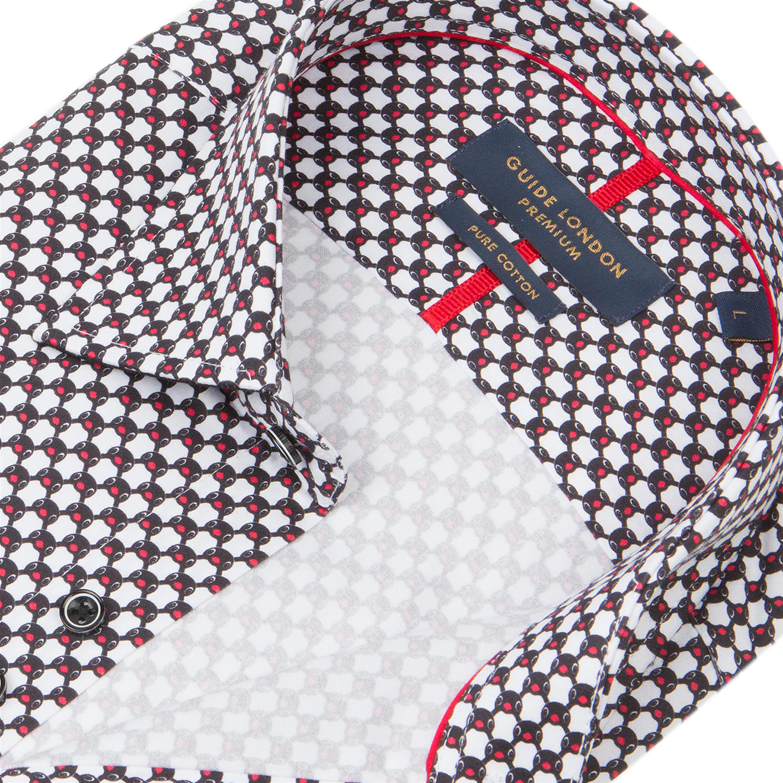 A lovely geometric print shirt - yes it is. But zoom in, and what can you see? This penguin motif print shirt is more than you think it is on first appearance, and it is made on our soft touch pure cotton sateen finished fabric.