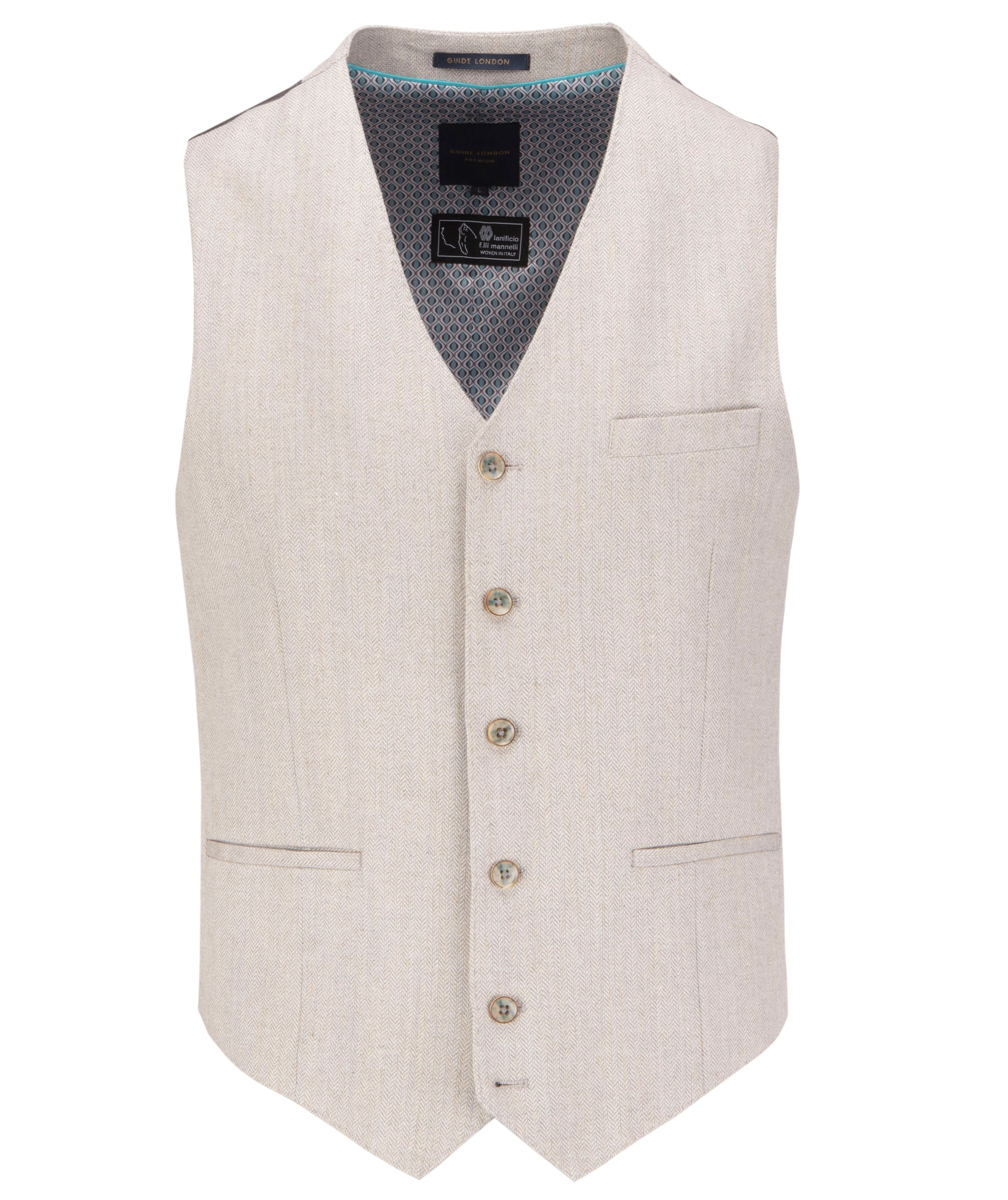Elevate your formal attire with our Light Grey Herringbone Weave Waistcoat, a sophisticated addition to any wardrobe. Crafted from premium fabric, this waistcoat features a subtle herringbone pattern that adds texture and depth to its classic design. The light grey colour makes it an incredibly versatile piece, easily pairing with a variety of shirts and jackets for both formal and smart-casual occasions.