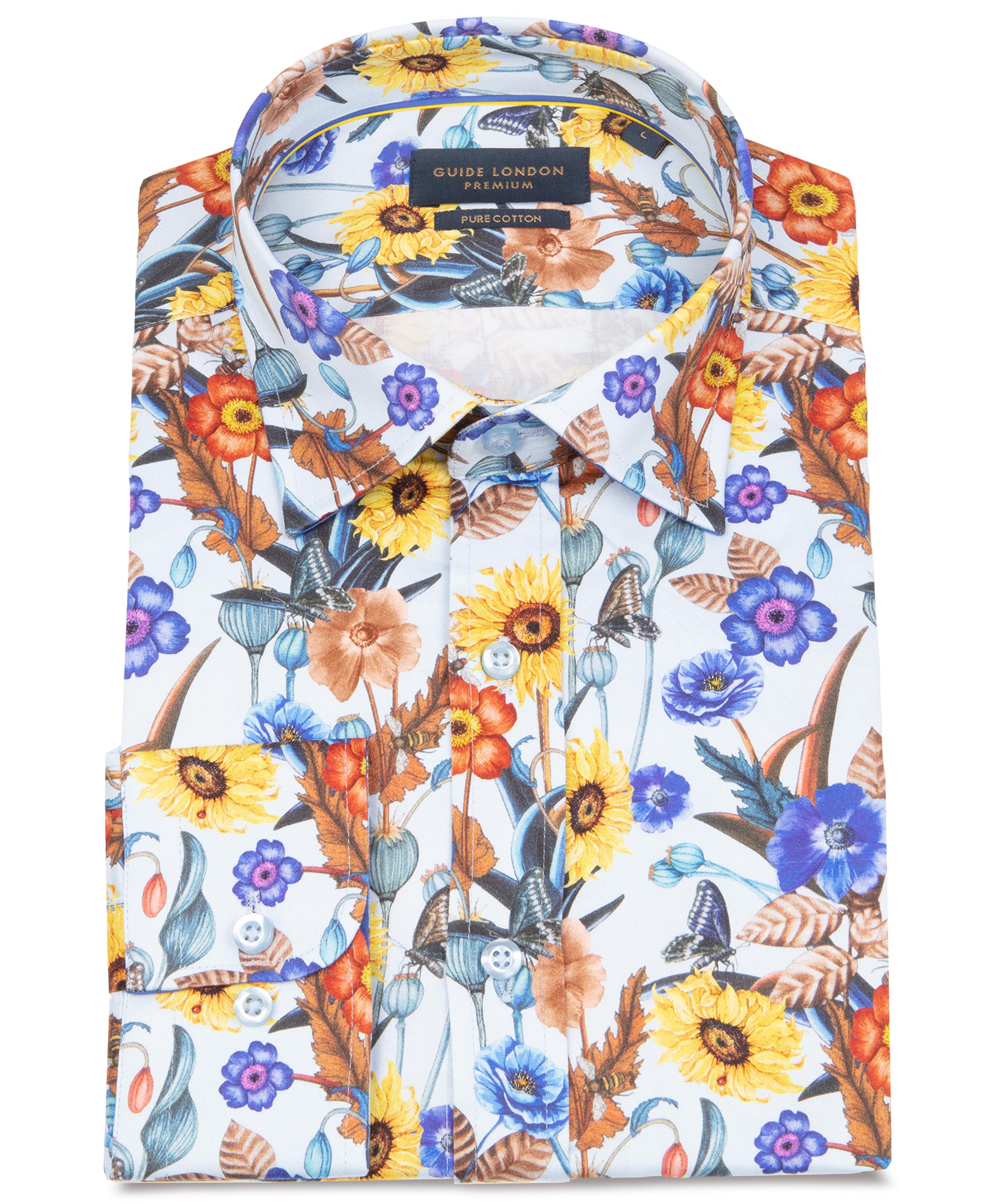 A kaleidoscope of colour in this wonderful garden print on a soft pastel blue base colour. Flor and fanua abound in this delightful print. The base fabric is our soft touch pure cotton sateen finished fabric.