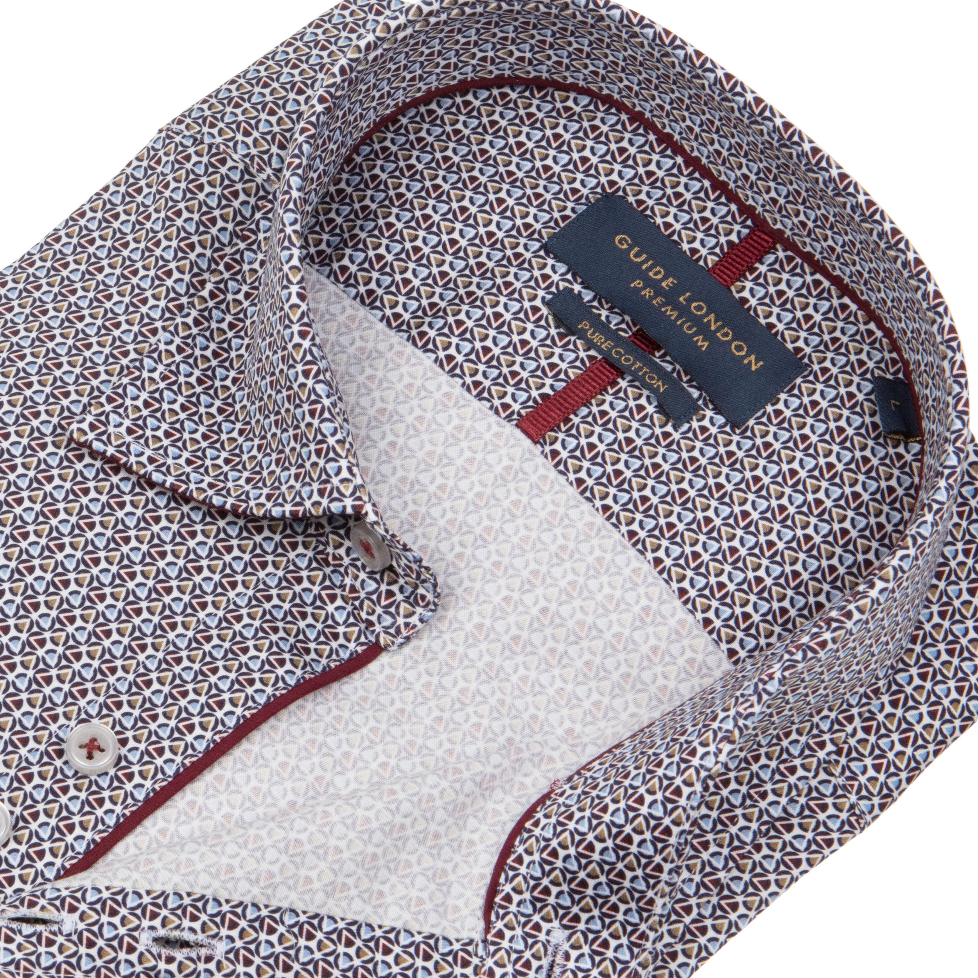 Introducing our Men's Geometric Pattern Long Sleeve Cotton Shirt – a fusion of modern style and everyday comfort that's sure to elevate your wardrobe game. This shirt effortlessly combines a classic silhouette with a contemporary geometric pattern, making it a standout choice for any occasion.