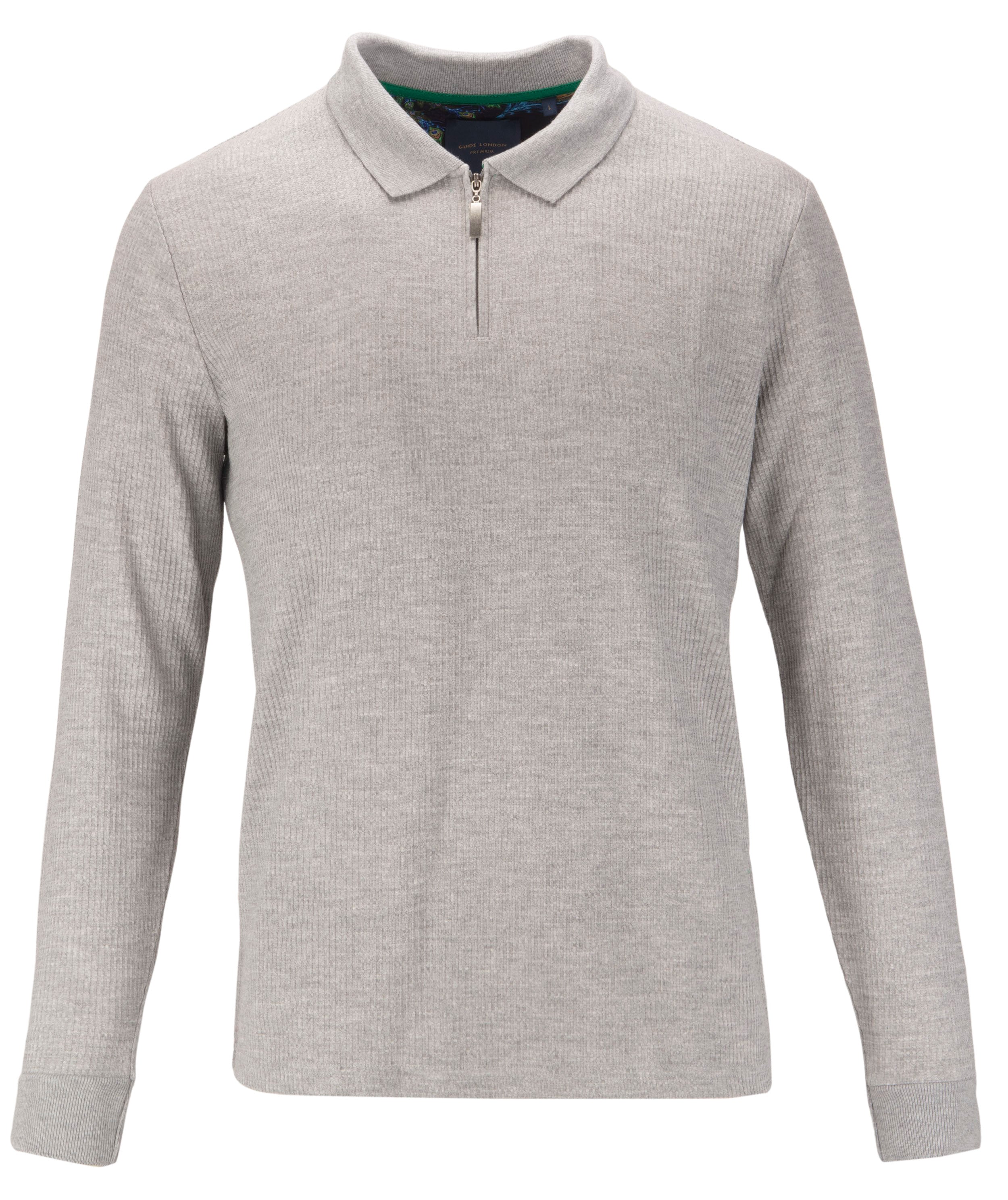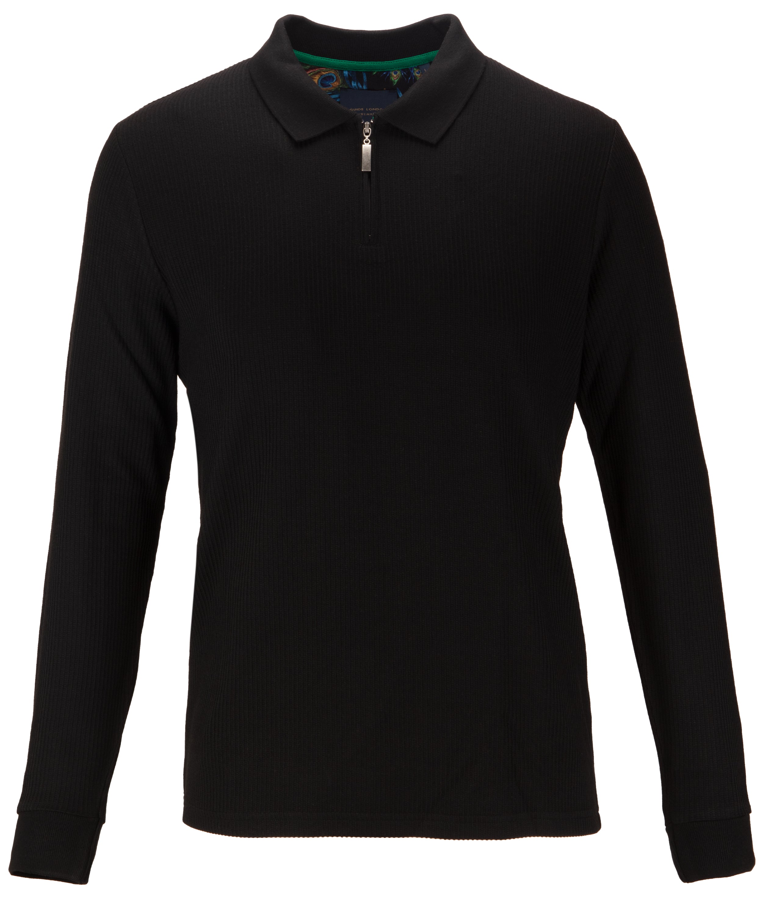 A classic long sleeved polo updated with a zip fastening. Featuring a knitted rib collar and cuffs. The zip fastening and fine detailing is designed to add luxury to any wardrobe. A timeless look that will instantly upgrade your outfit, this piece is crafted with careful attention to detail, making it an ideal addition to any wardrobe.
