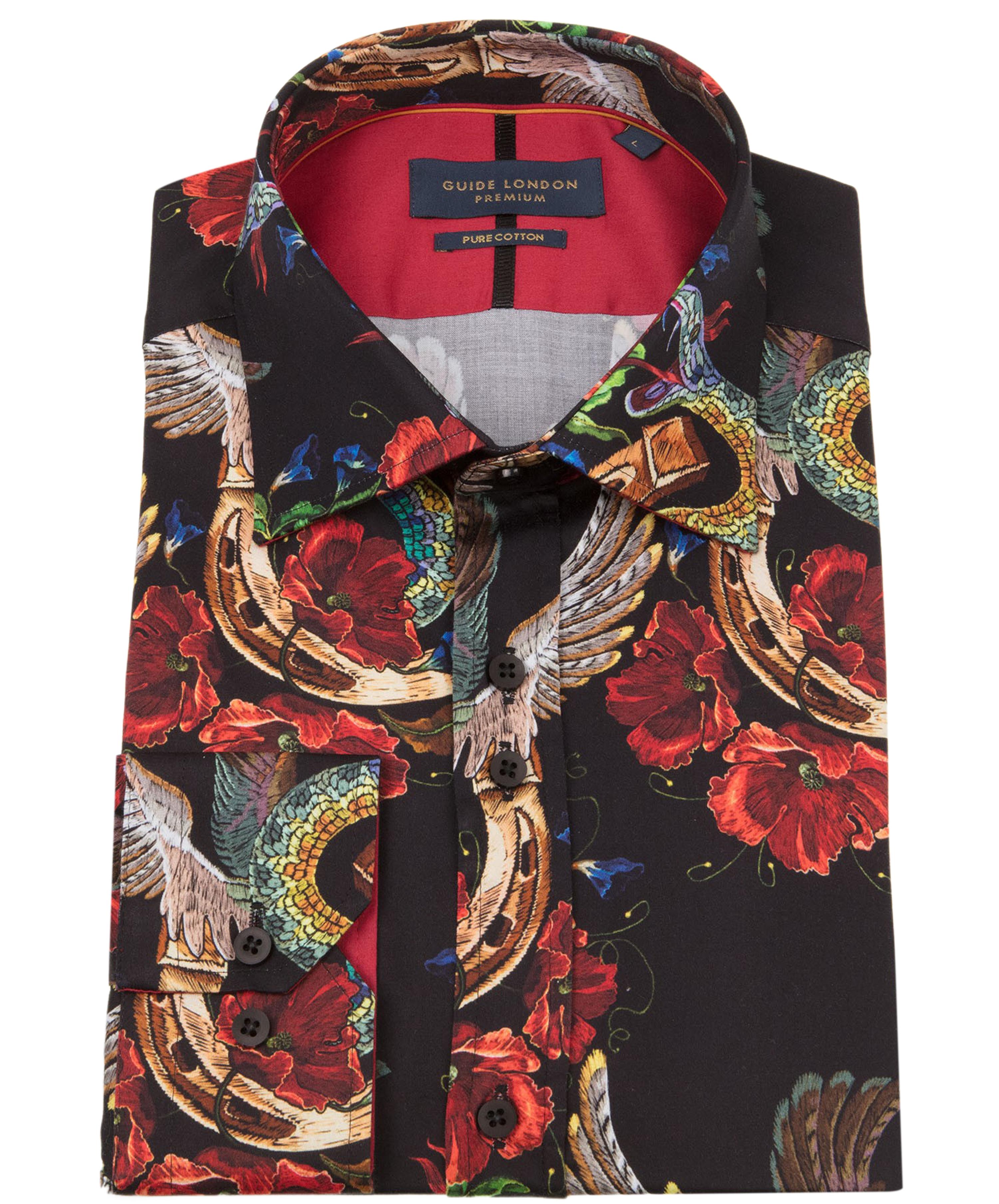 This luxurious long sleeve shirt is the perfect way to add an element of sophistication to your wardrobe. The intricate, abstract serpent, animal wings, and floral print make a bold statement to ensure you look like a showstopper wherever you go. Finished with a semi spread collar and button fastening, pair it with a waistcoat and dark trousers for a timelessly stylish look.