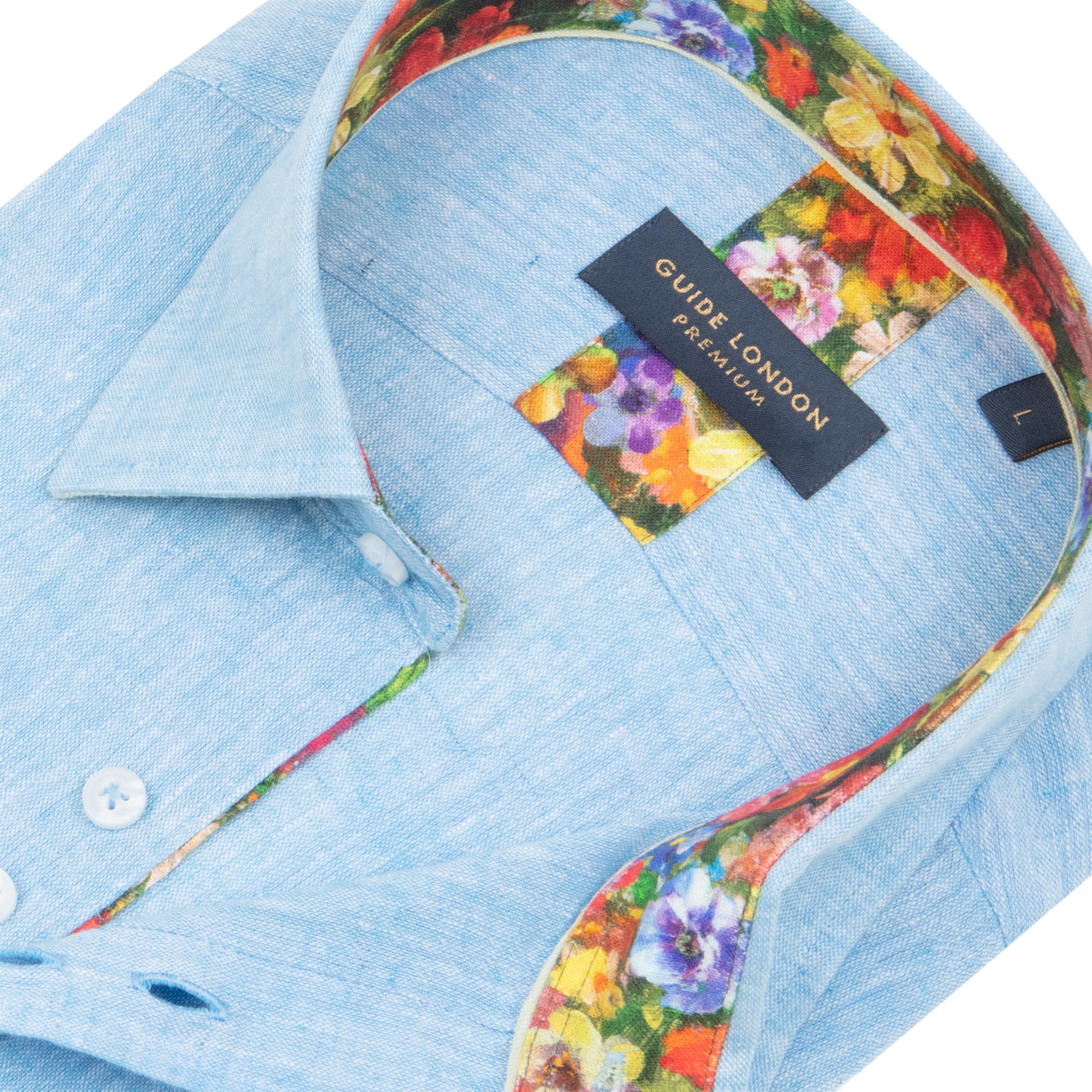 Discover effortless style with our Men's Linen Blend Long Sleeve Shirt, designed for comfort and a touch of sophistication. Made from a lightweight, breathable linen blend, this shirt keeps you cool while offering a polished look that transitions seamlessly from day to night. Featuring subtle floral accents on the inner collar, it brings a hint of personality to a timeless classic. The versatile design pairs perfectly with jeans or chinos, making it ideal for both casual outings and dressier occasions.
