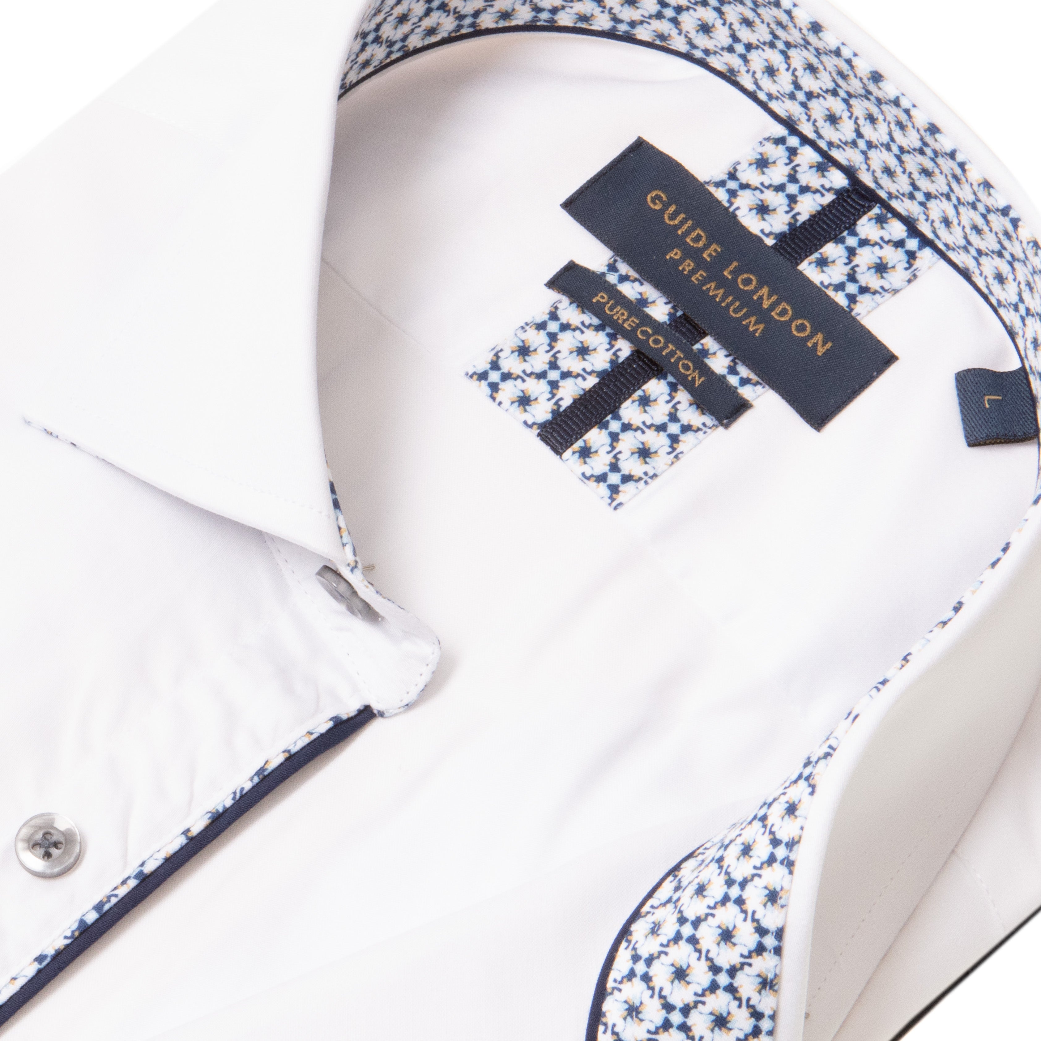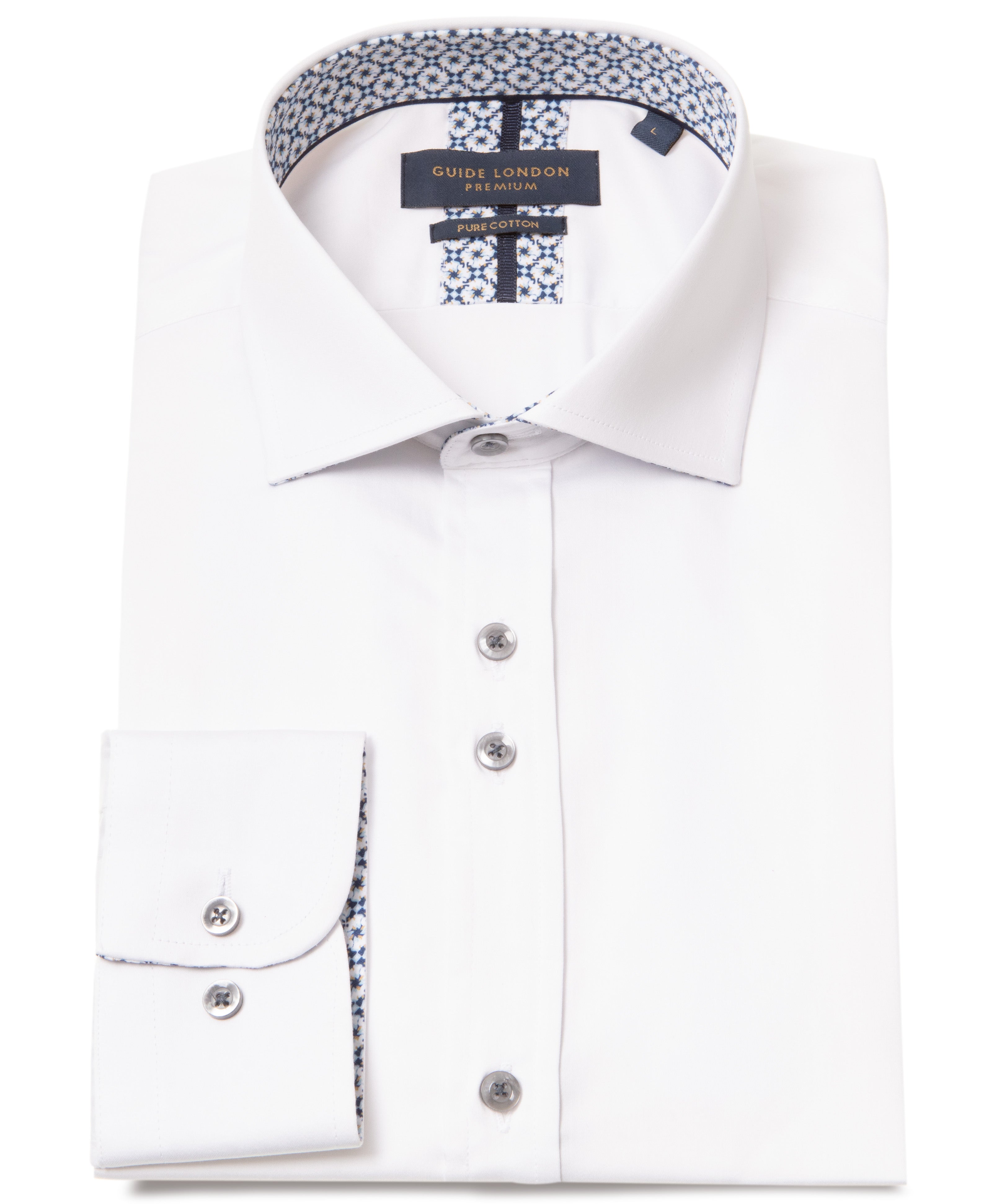A twist on a classic, the Long Sleeve Double Button Shirt is the perfect addition to your wardrobe. Featuring a pure cotton sateen finish fabric, geometric print classic collar, all with a flattering tapered silhouette.