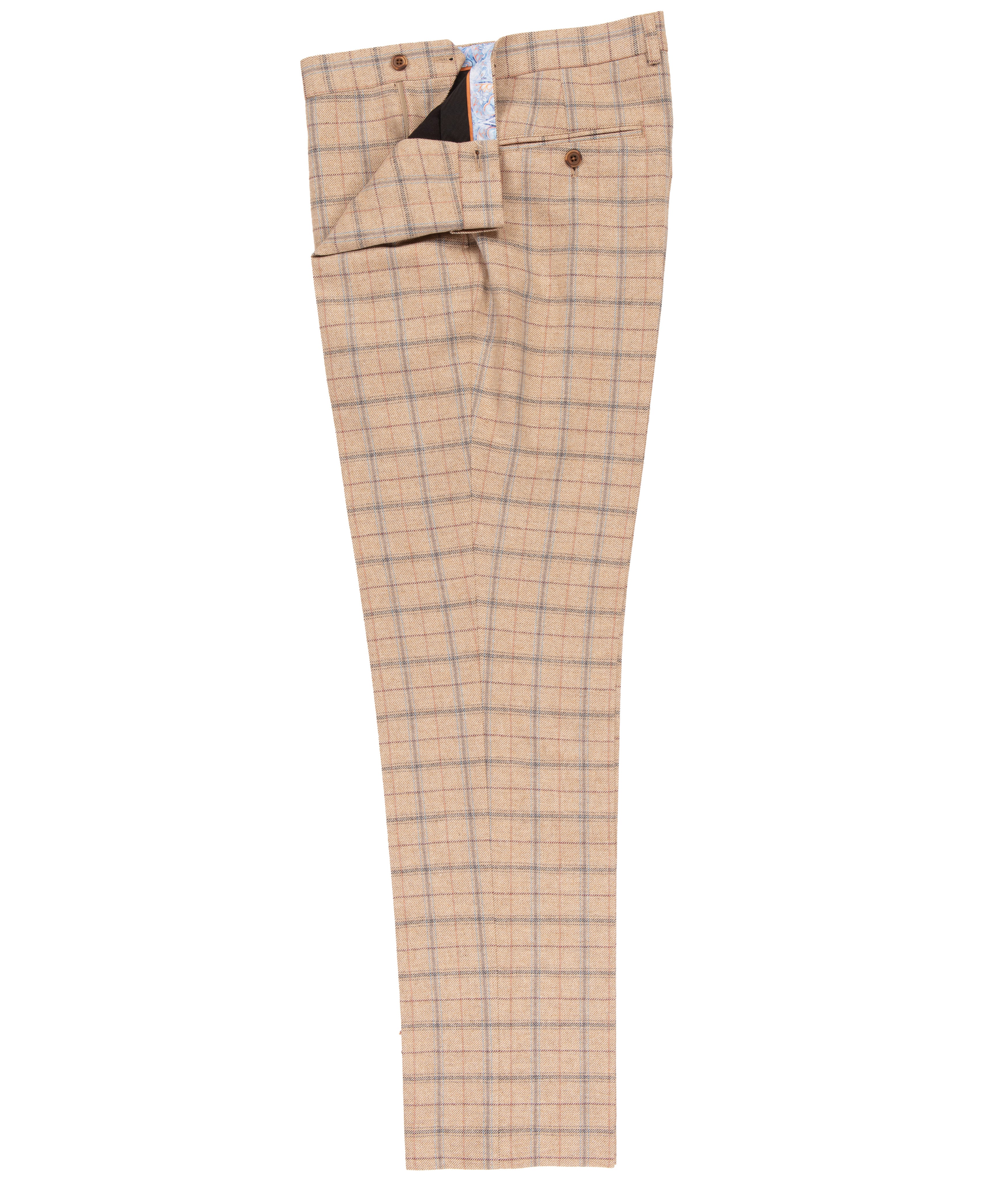 Elevate your style with our Men’s Tan Checked Trousers, featuring a refined check pattern with subtle hints of blue for a modern twist. Crafted for comfort and sophistication, these trousers offer a tailored fit that flatters and complements any look, from office wear to weekend outings. The versatile tan shade pairs effortlessly with a range of colours, while the understated blue accents add a touch of uniqueness.