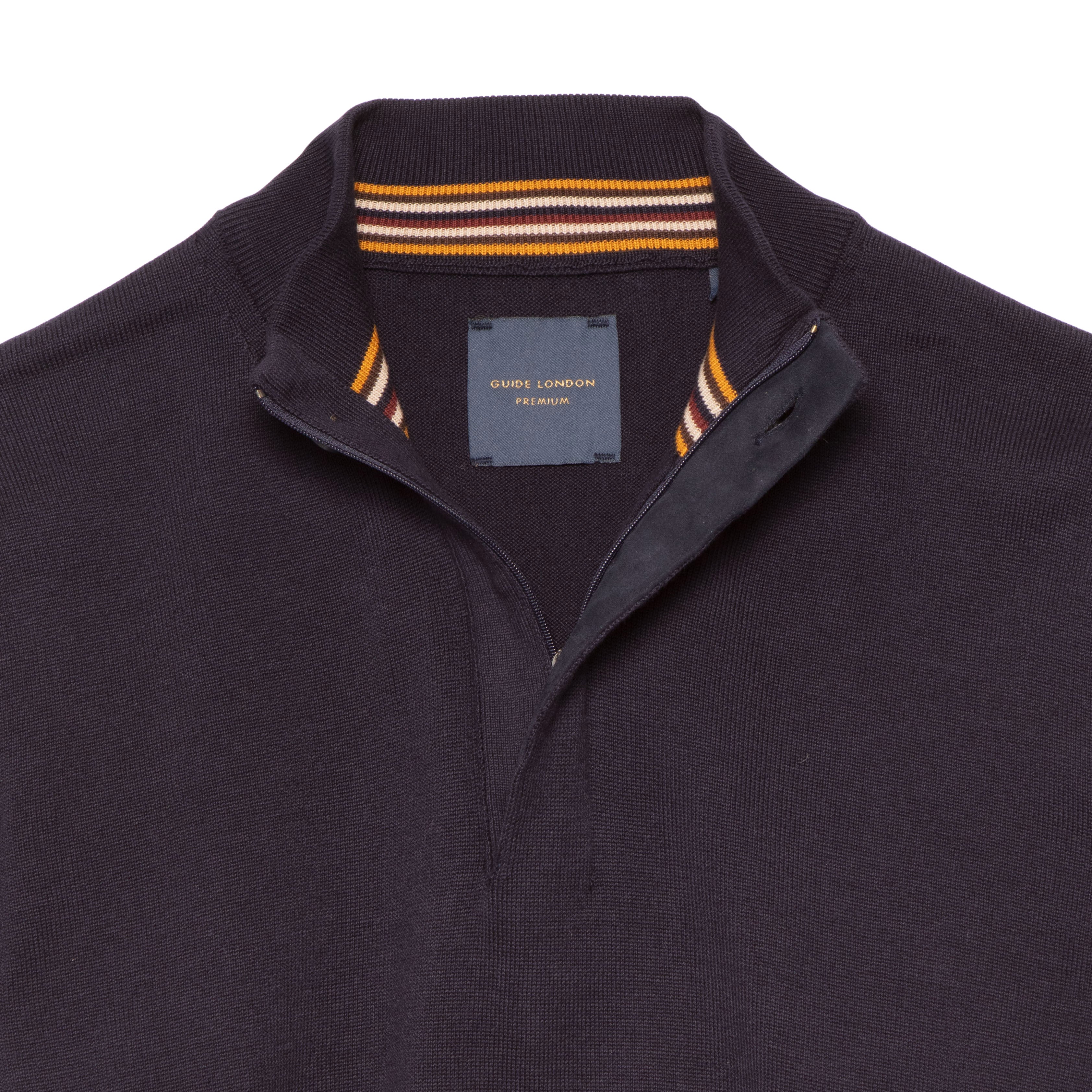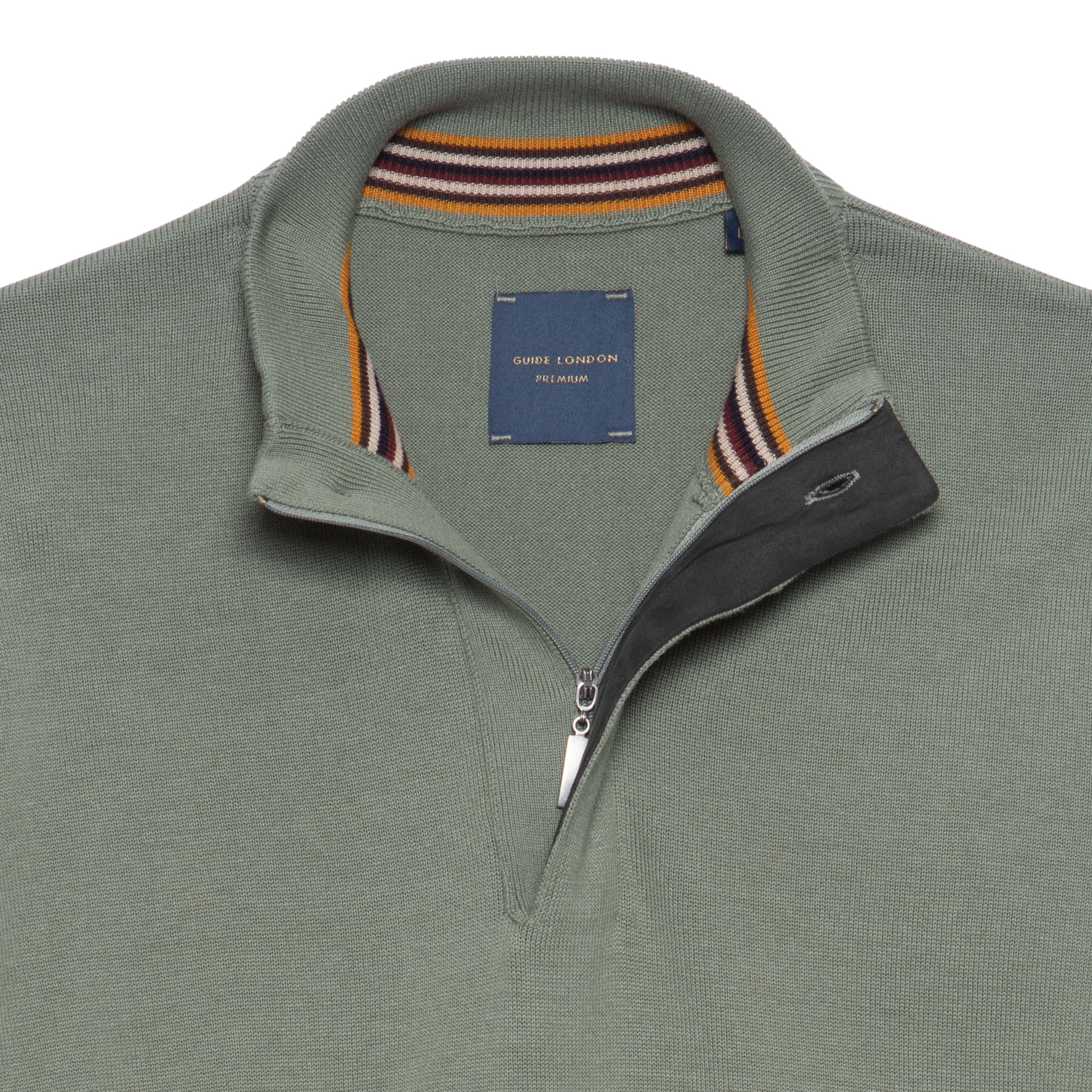 Elevate your everyday style with our 100% Cotton Knit Zip-Top, crafted for comfort and versatility. This classic men's top features a sleek front zipper for easy layering, while its breathable cotton fabric ensures all-day comfort. The surprise detail? Vibrant, colourful stripes lining the inside collar, adding a playful pop to your look when the zip is undone. Whether you're dressing it up for a night out or keeping it casual, this knit top brings both subtle sophistication and a fun twist to your wardrobe essentials!