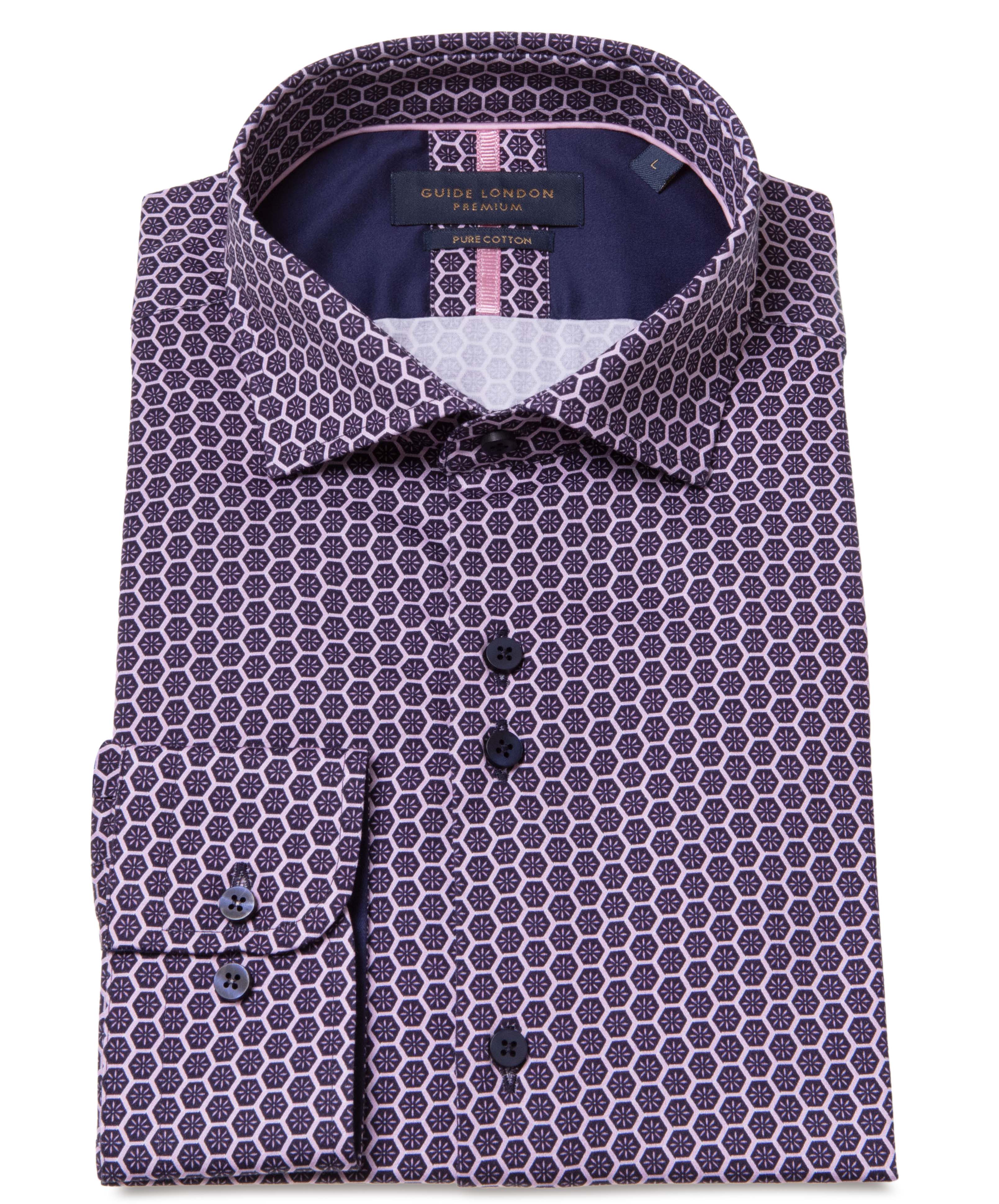 Elevate your wardrobe with our Long Sleeve Shirt, crafted from 100% pure cotton and designed to make a bold statement. Featuring a dynamic geometric pattern in striking navy and pink colours, this shirt combines contemporary design with classic comfort, making it a versatile addition to any wardrobe.