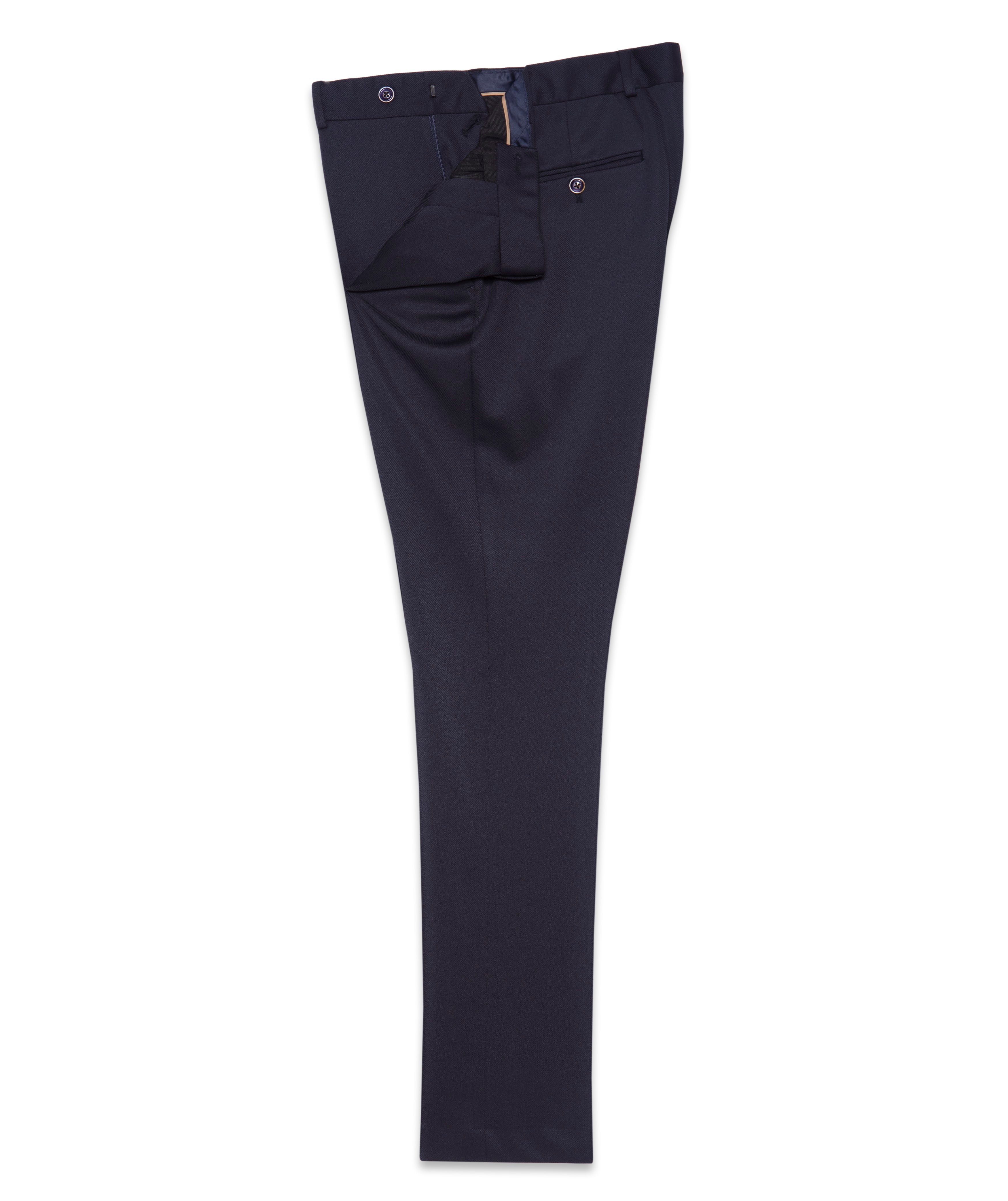 Complete your look with our Men's Navy Tailored Trousers, designed to perfectly complement the sleek double-breasted jacket. Crafted with the same precision and attention to detail, these trousers feature a sharp, tailored fit that exudes sophistication. Whether paired with the matching jacket for a refined, formal ensemble or styled on their own for a polished casual look, these trousers deliver a seamless blend of modern style and classic elegance.