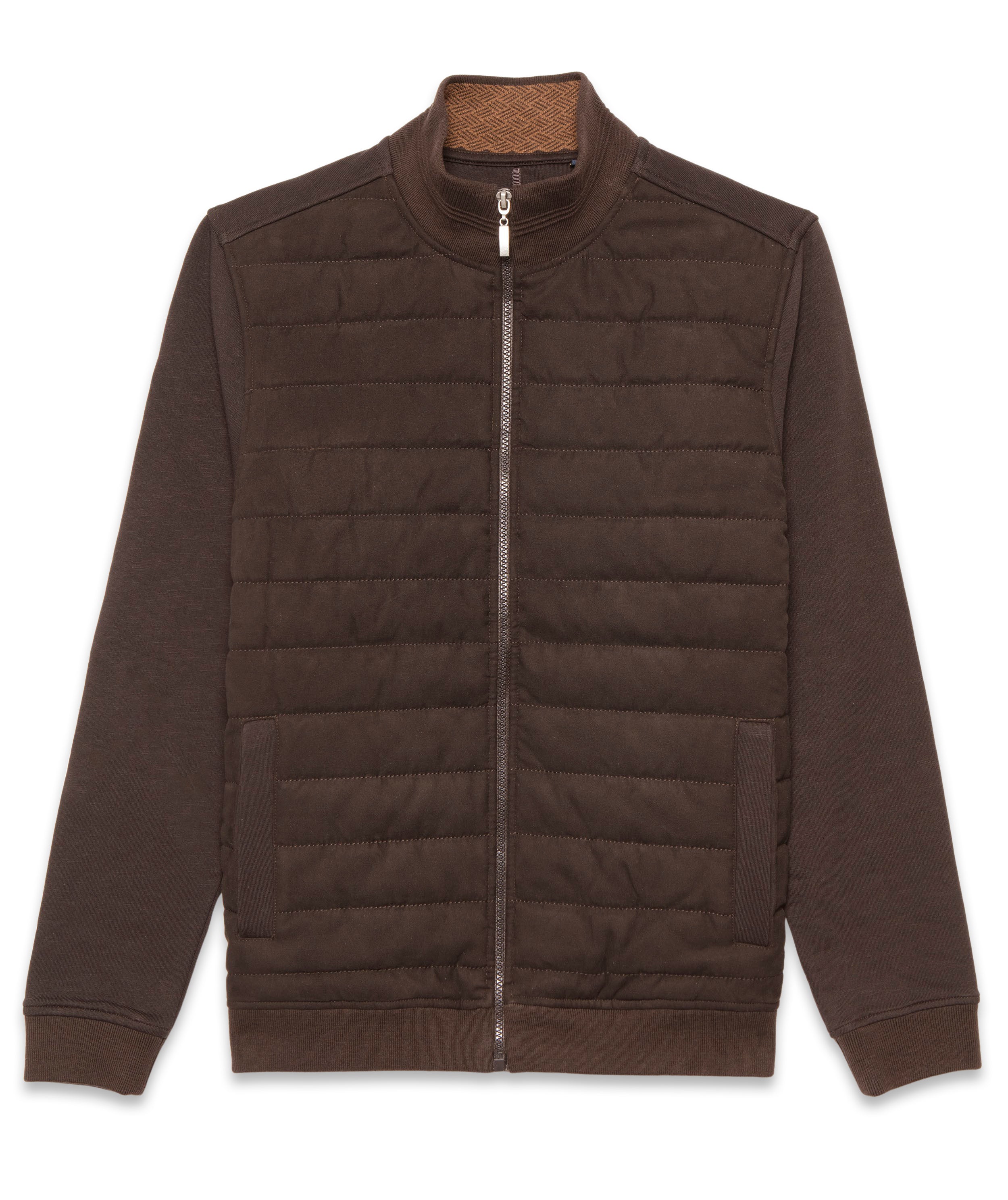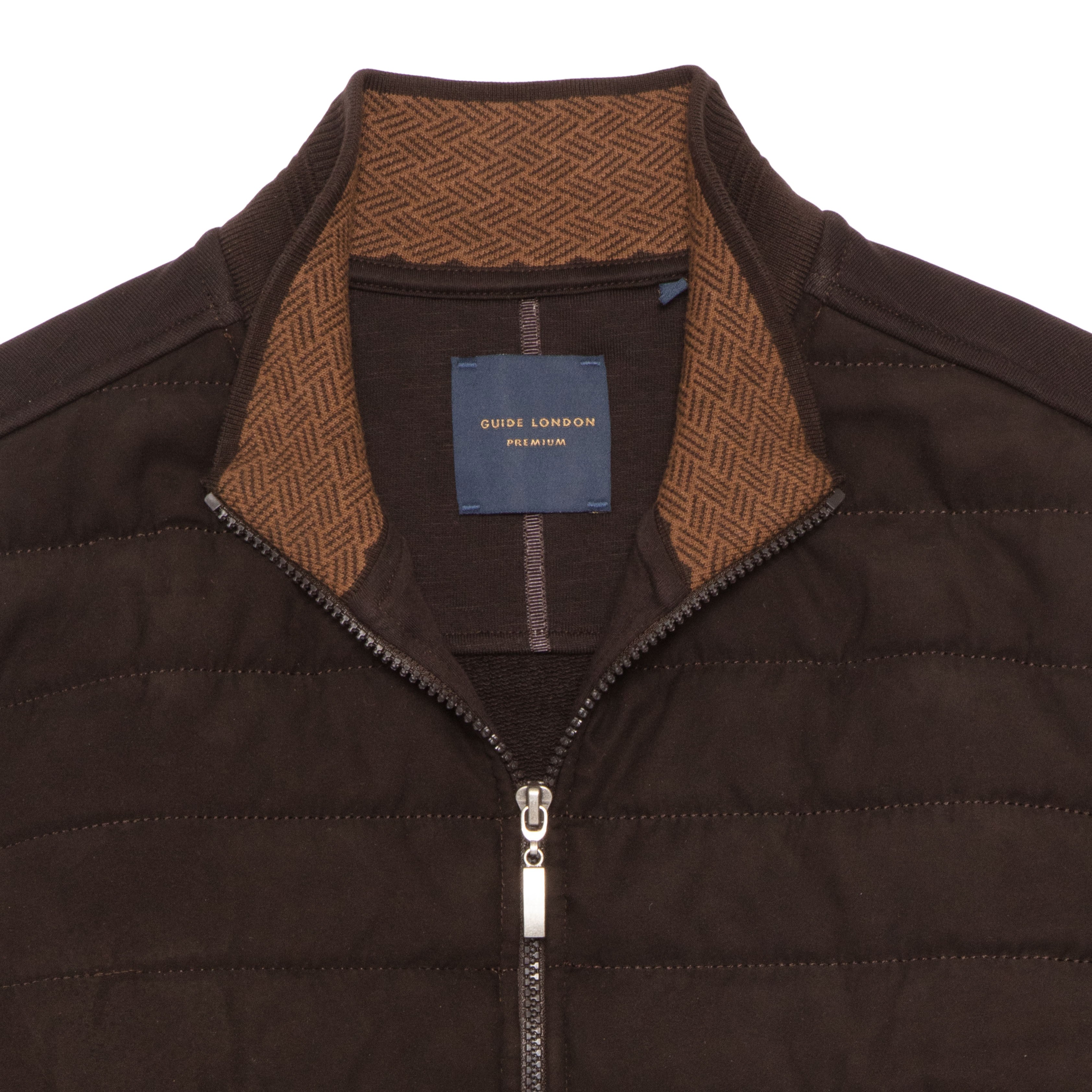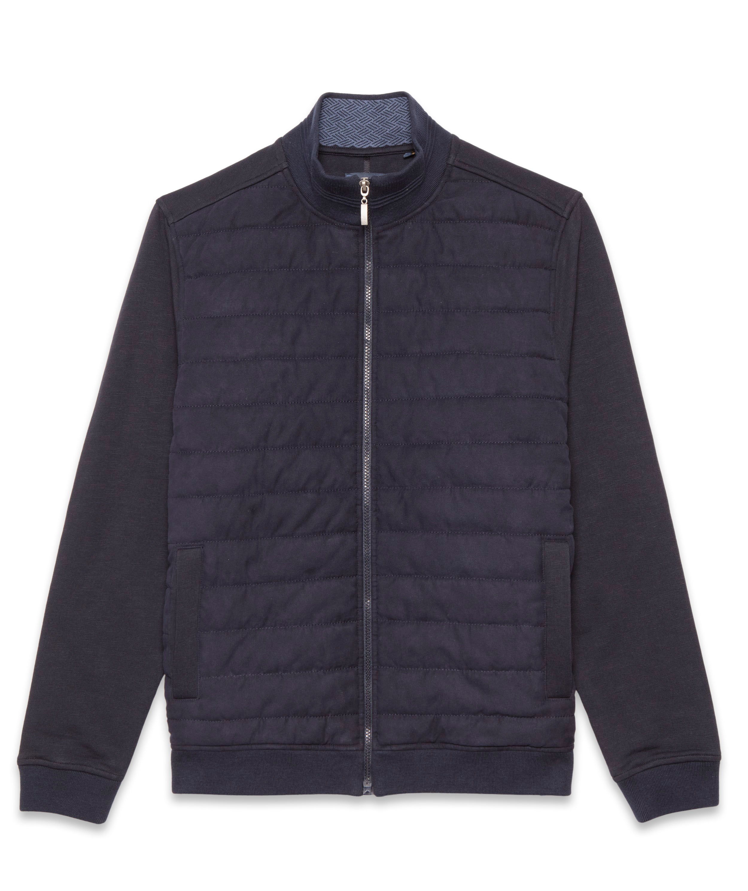 This zip-up bomber showcases a rich navy body with eye-catching pop-blue details in the collar, and a warm brown option with striking tan accents. The contrasting colour details add a fresh, contemporary touch, while the ribbed cuffs and hem ensure a comfortable, tailored fit.