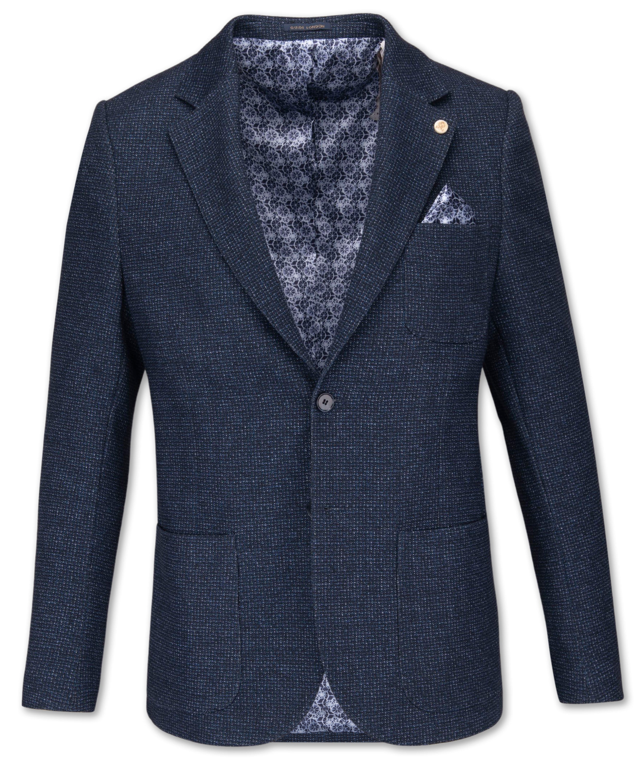 Elevate your collection with our modern cut navy jacket, designed for the contemporary man. This jacket offers a sleek silhouette that enhances your profile while ensuring maximum comfort. The rich navy hue adds a touch of sophistication, making it perfect for both casual outings and more formal occasions.