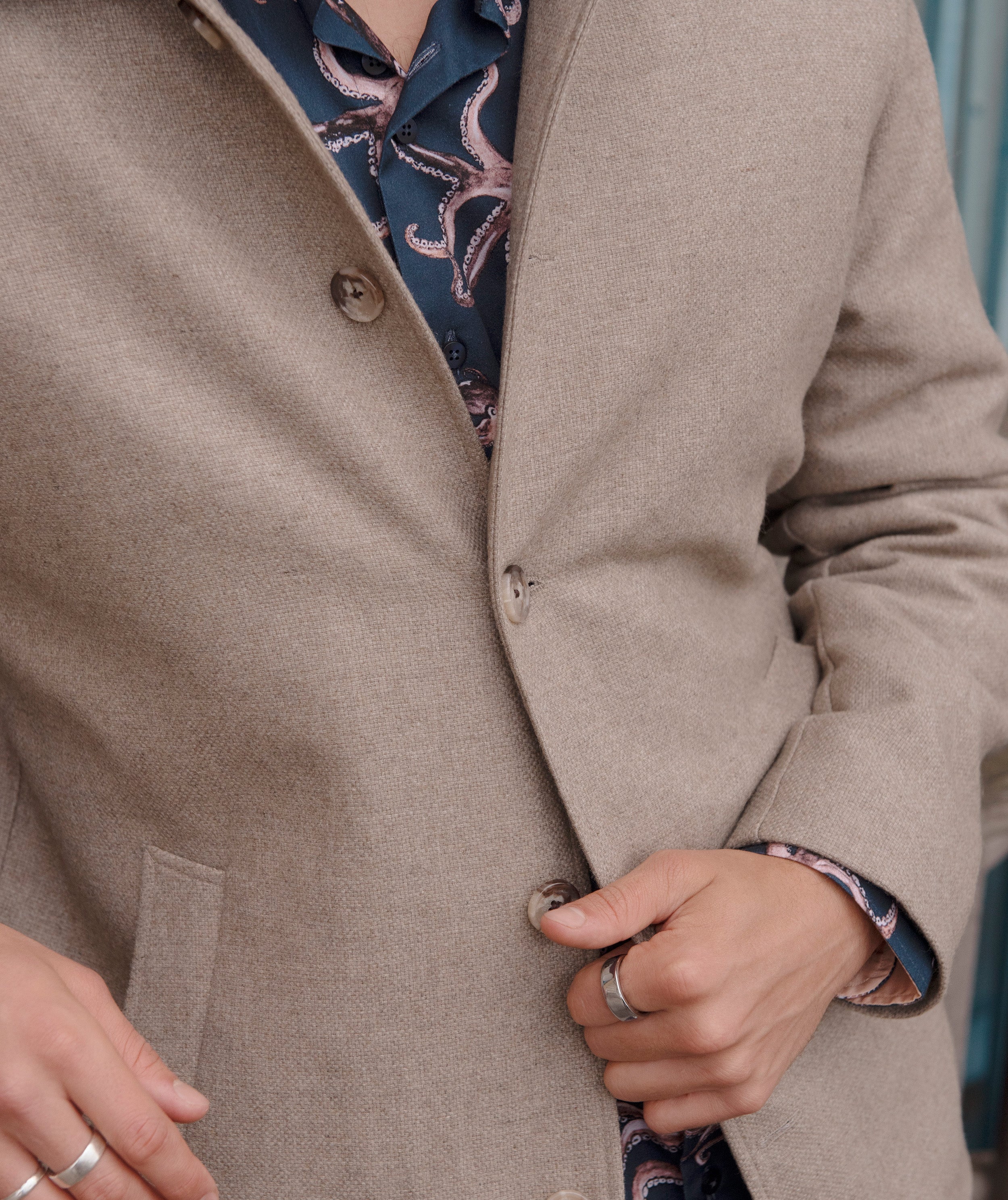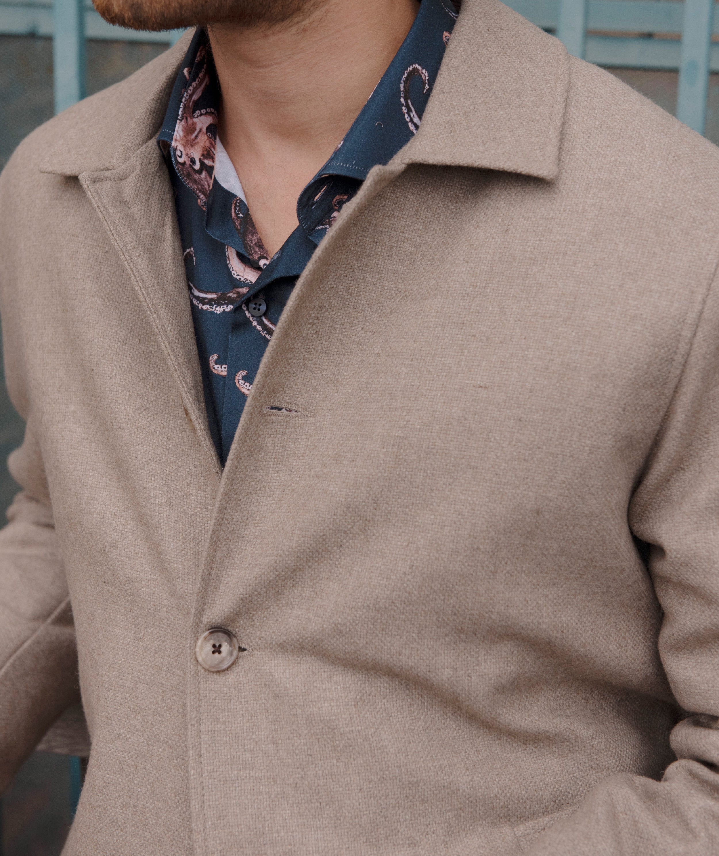 Stay warm and stylish with our wool-blend outerwear jacket, available in three sophisticated shades: oatmeal, sage, and navy. Designed for comfort and versatility, this jacket is perfect for layering on cooler days. The premium wool blend offers warmth without compromising on style, making it an essential piece for your outerwear collection. Whether you're dressing up for a formal occasion or keeping it casual, this jacket will add a touch of elegance to any outfit.