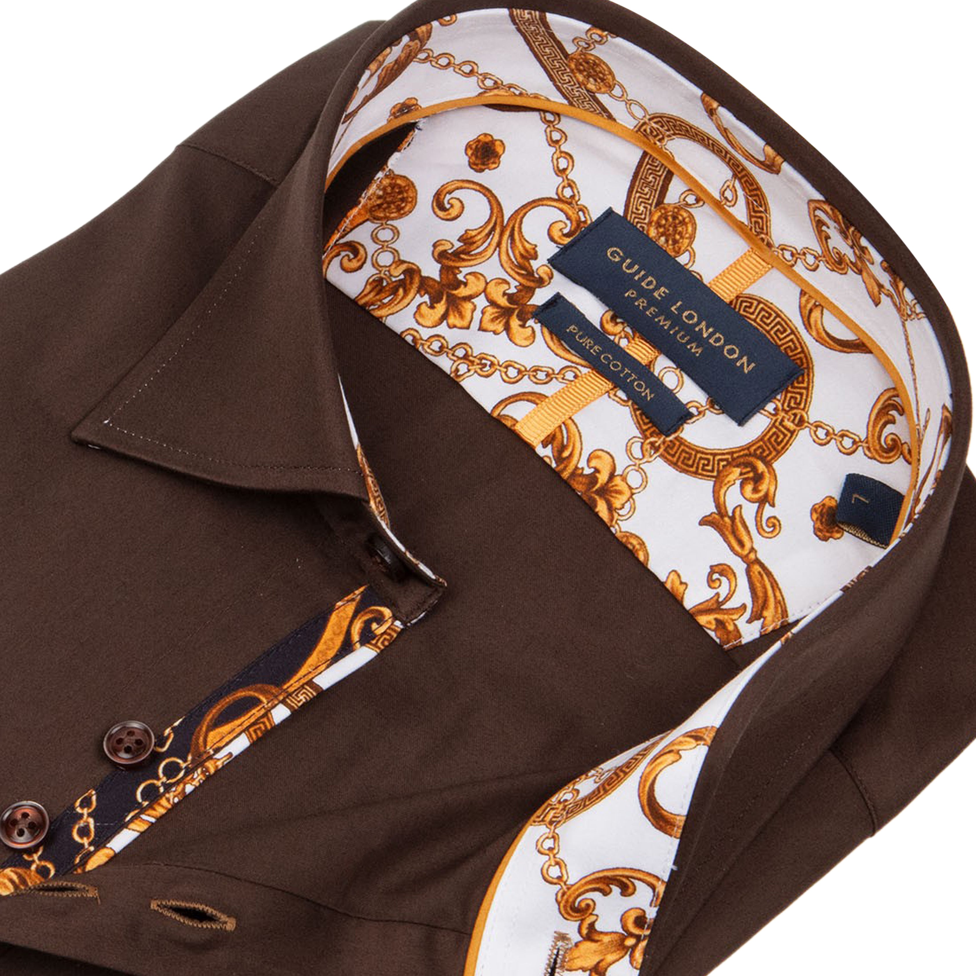 Crafted with meticulous attention to quality and design, this shirt boasts a rich and earthy brown colour that exudes warmth and sophistication. The 100% cotton fabric ensures a soft and breathable feel against your skin, making it perfect for all-day wear.