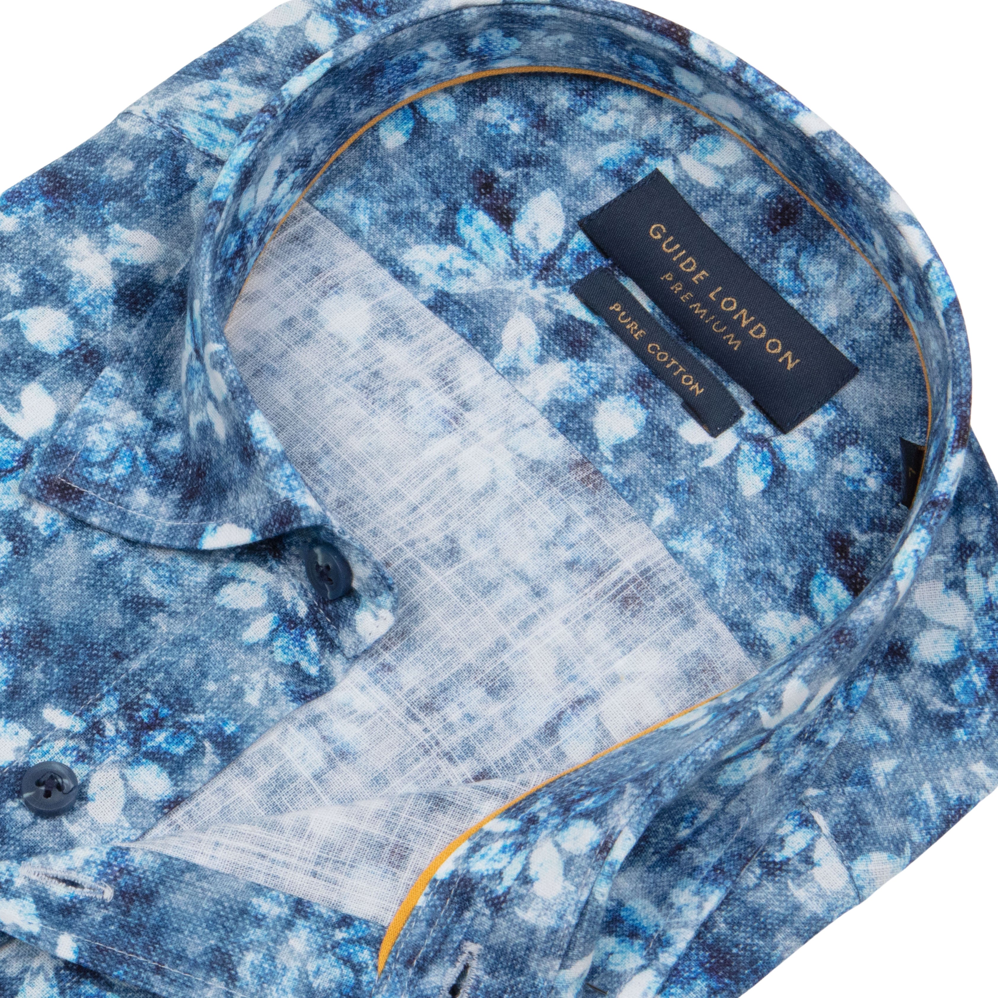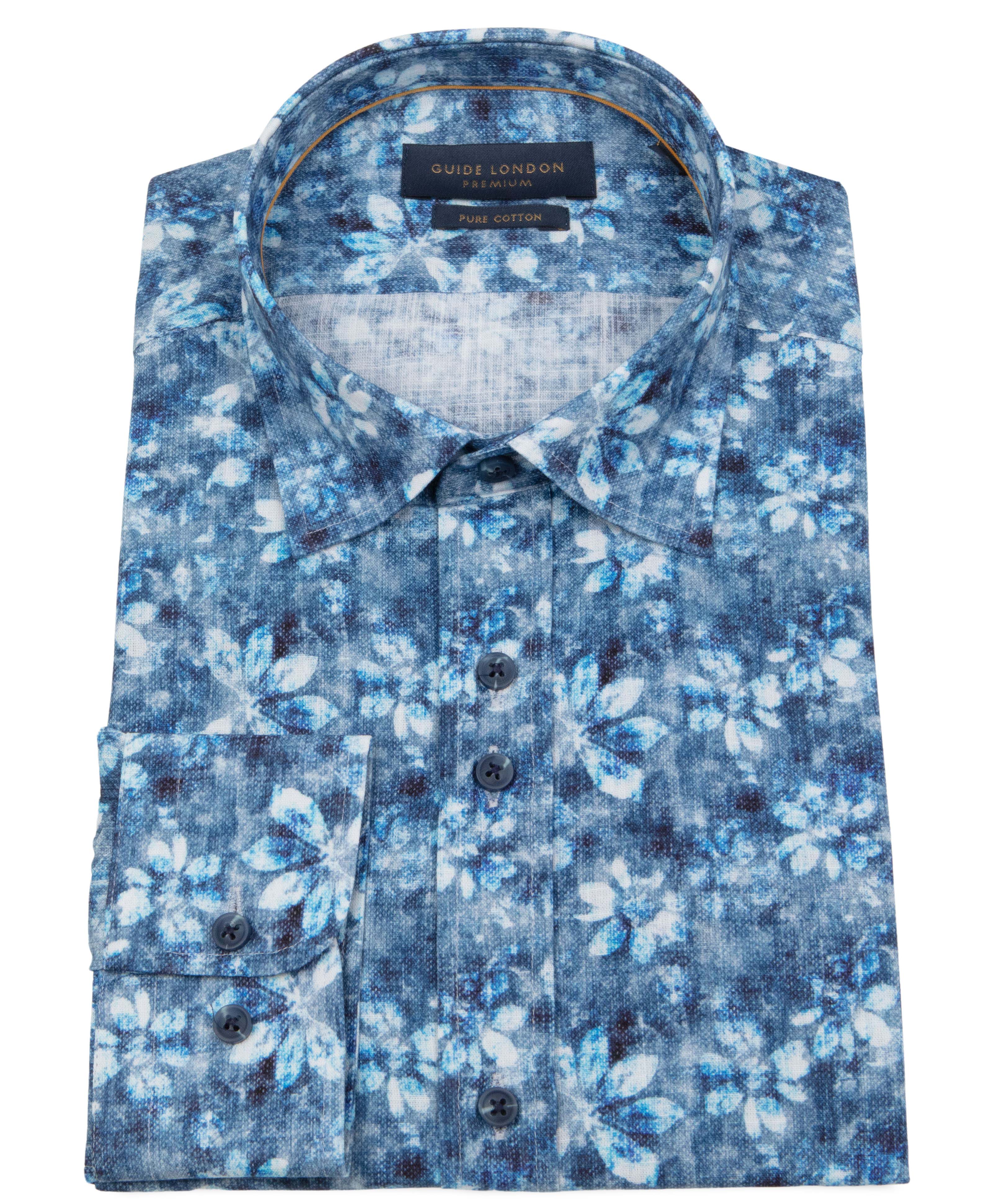 Introducing our Men's Floral Fantasy Shirt, where shades of blue come alive in a captivating floral design! Crafted from a soft cotton "linen look" fabric, this shirt offers a playful twist on classic sophistication.