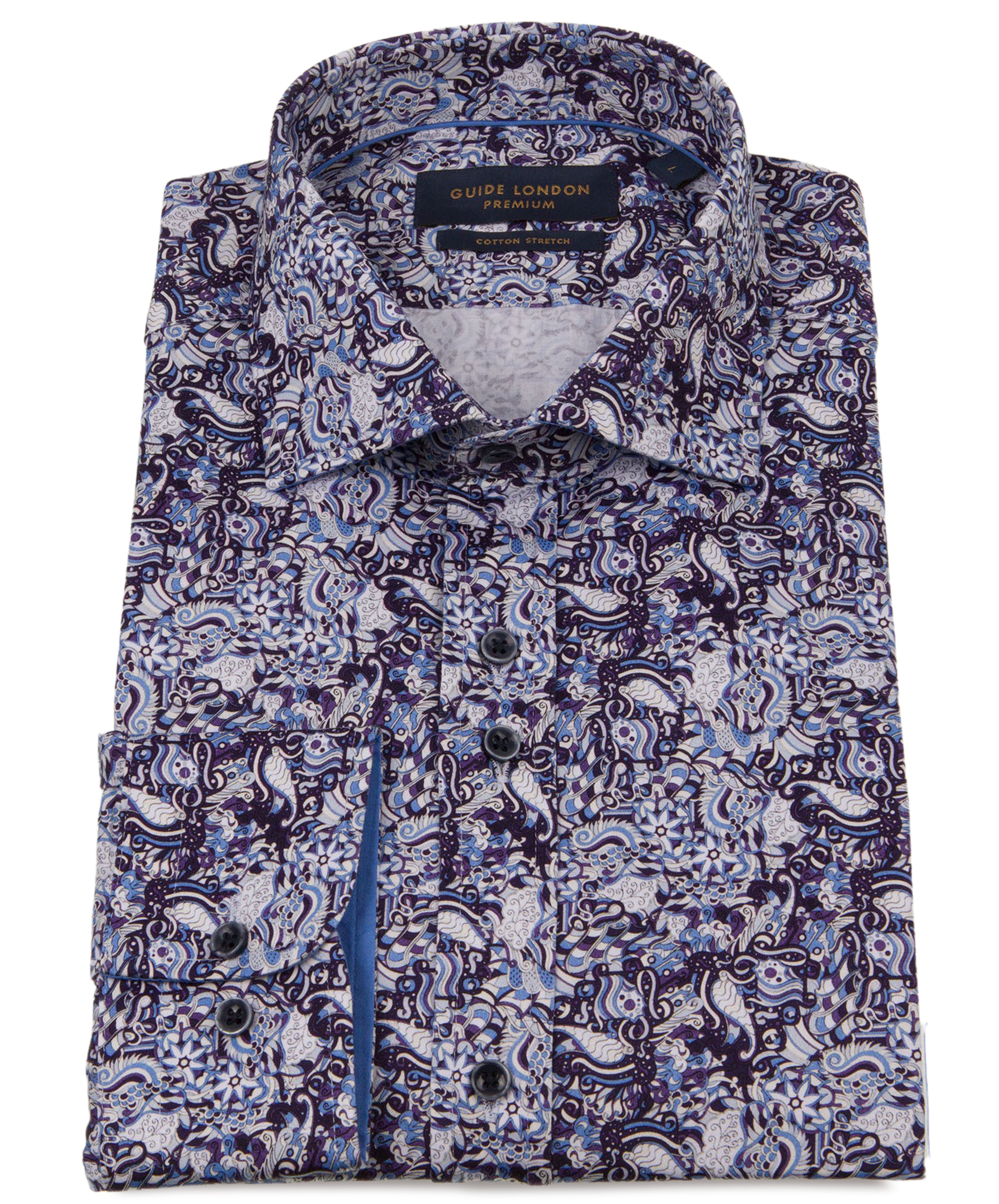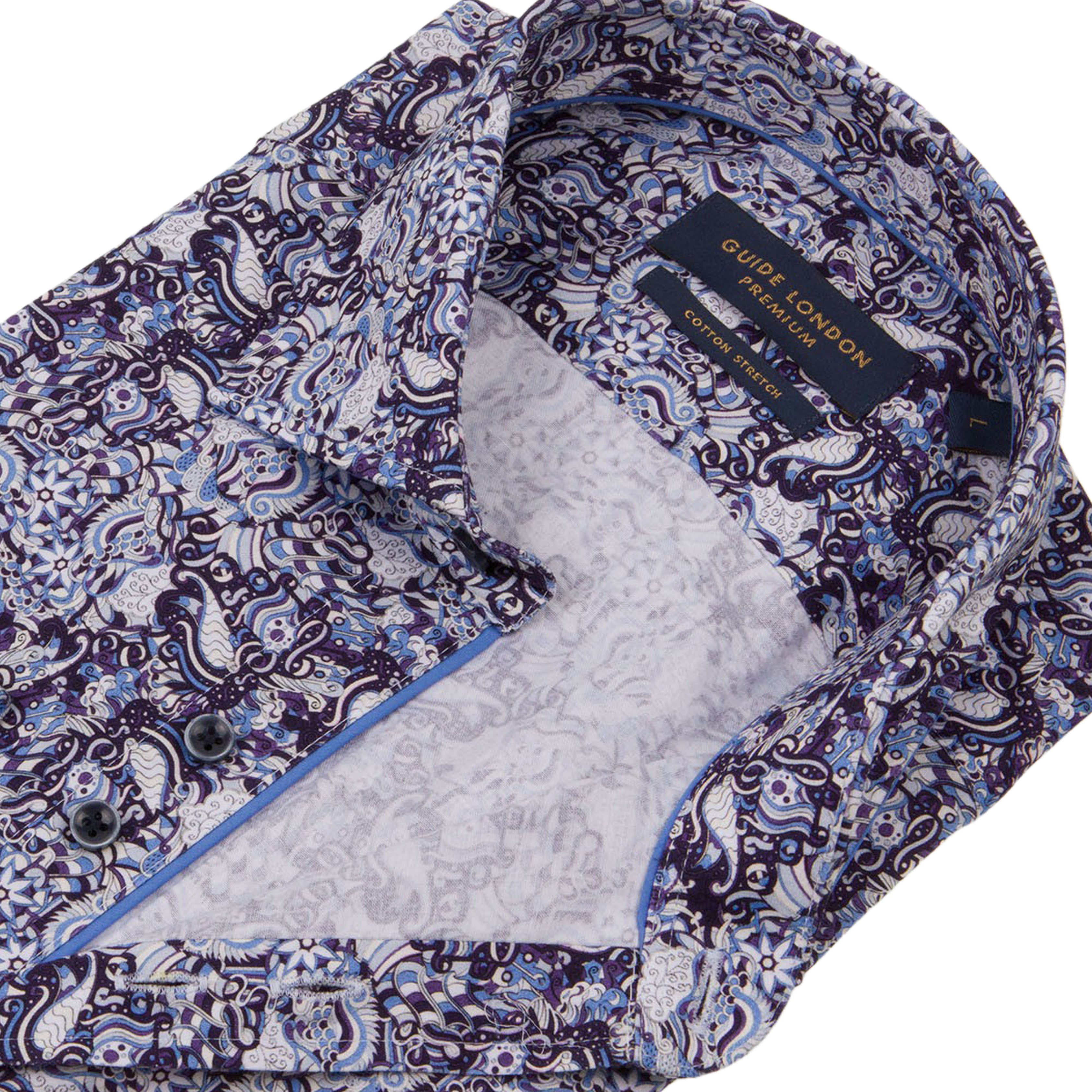 A print with Persian origins that has travelled the silk route from East to West, appeared on the bandanas of cowboys and bikers, and worn by everyone from Oscar Wilde, the 19th Century Boho set, free loving hippies of the 60's and 70's, to The Beatles, Mick Jagger and Prince. The timeless and flamboyant Paisley print has been given a modern makeover, the riotous pattern seen here in shades of blue and white. Printed on our luxurious stretch cotton sateen and finished with contrast details in bright blue and pink