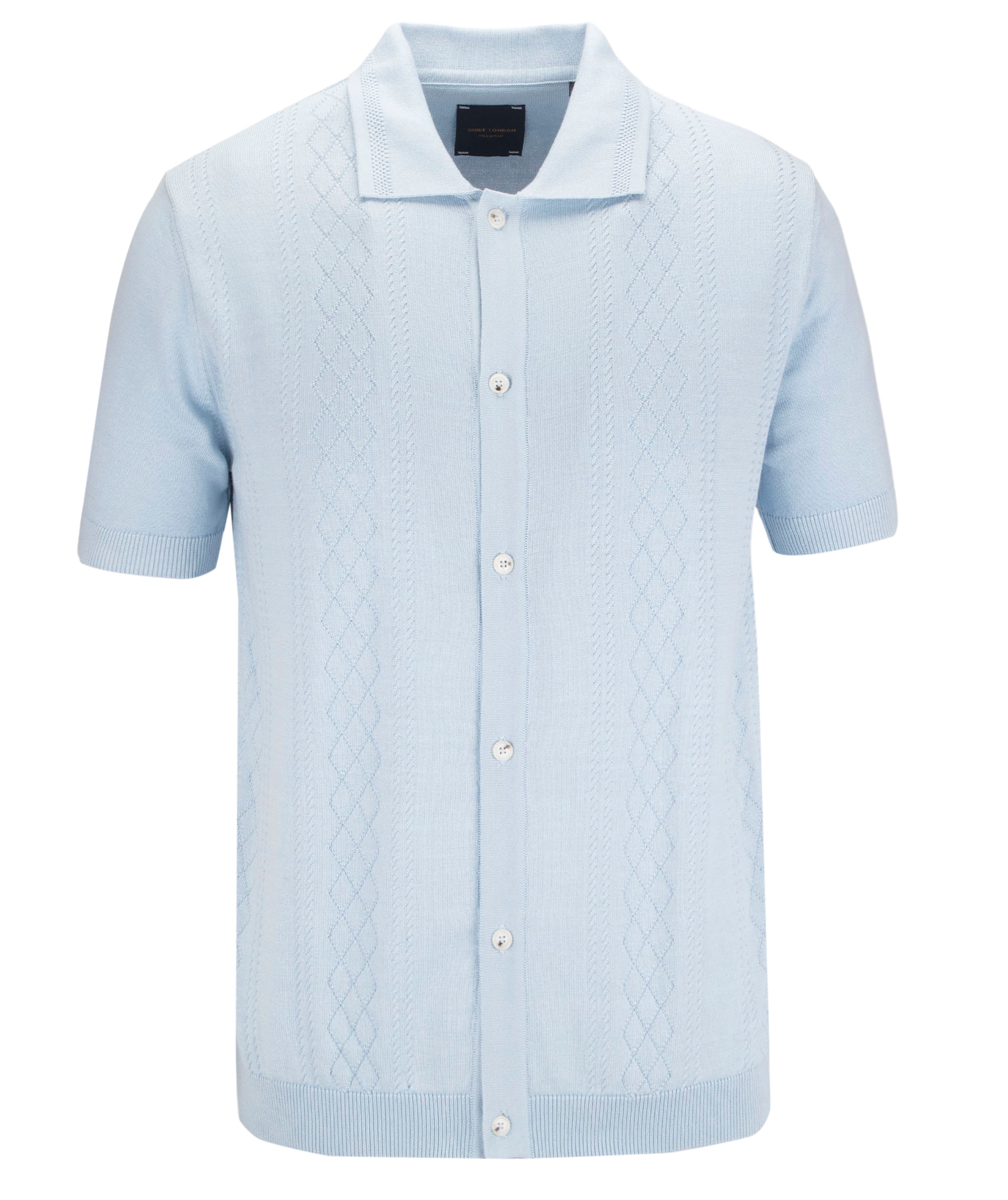 Experience comfort and style with our Pure Cotton Pointelle Patterned Knitted Button Through Short Sleeve Shirt. Crafted with a unique texture, this shirt adds a touch of sophistication to any outfit. Perfect for both casual and formal occasions.
