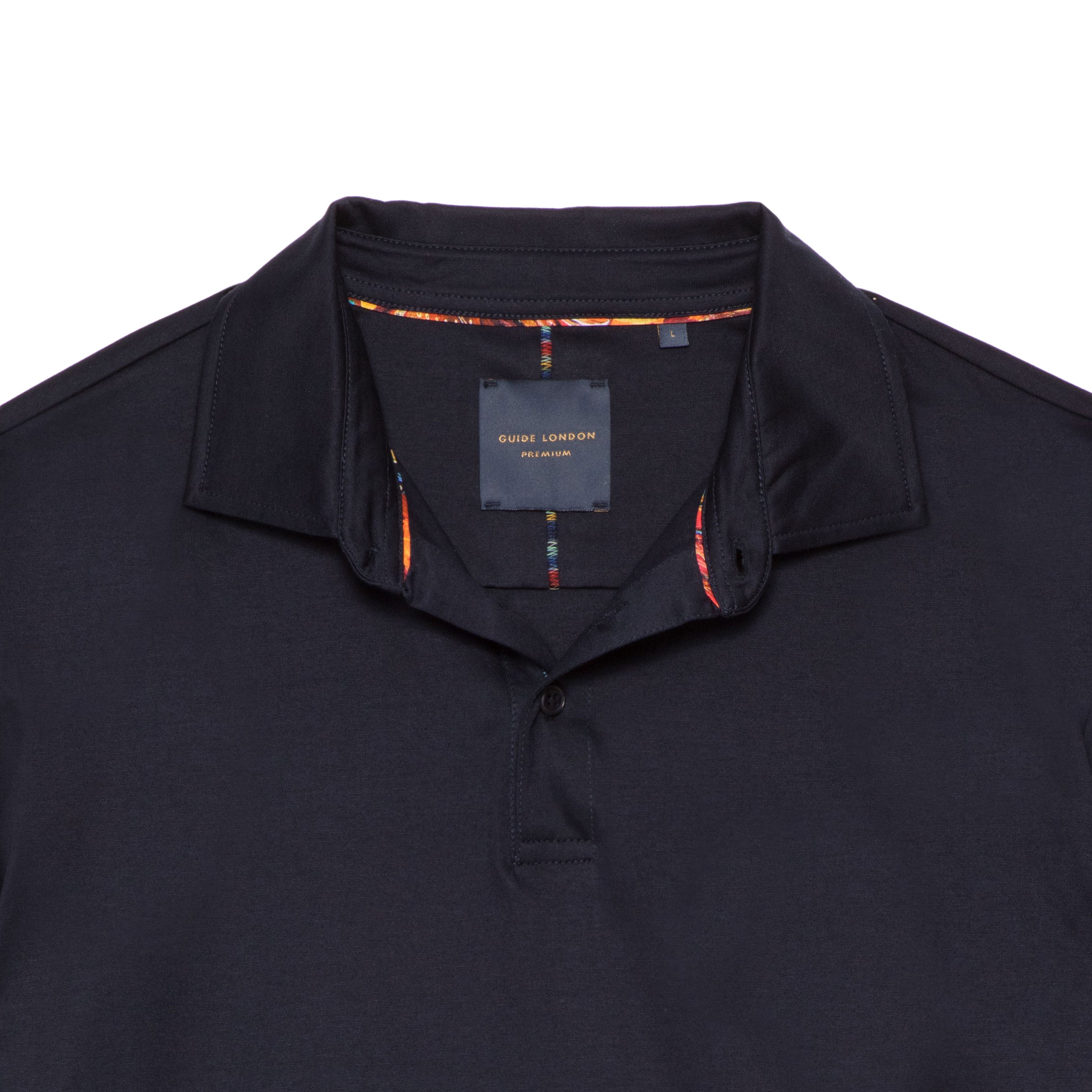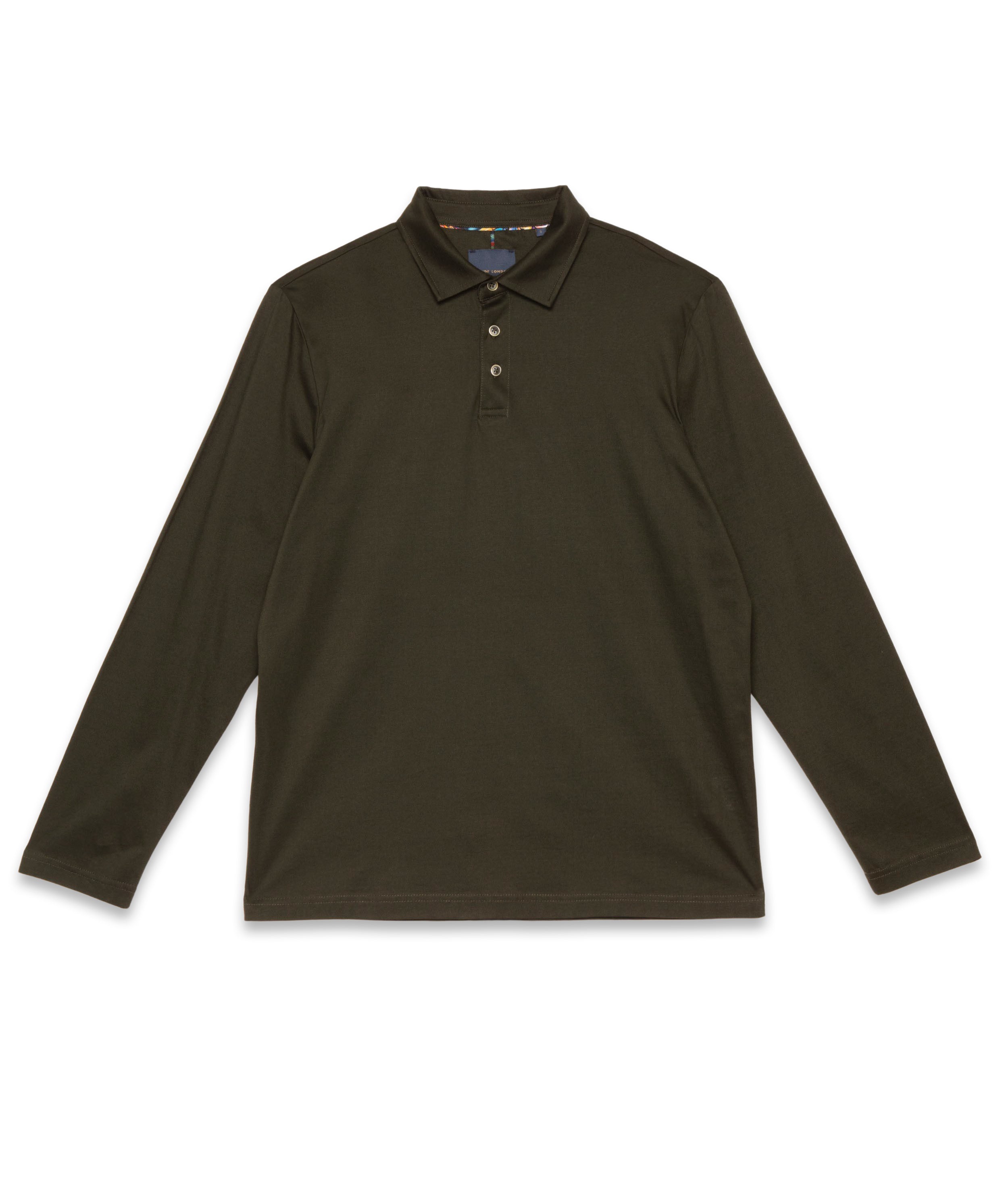 The smart long sleeve jersey polo made with mercerized cotton for unparalleled comfort. Featuring bright multi-colored internal details, this polo adds a pop of fun to your outfit. Upgrade your wardrobe and feel the difference in style and comfort