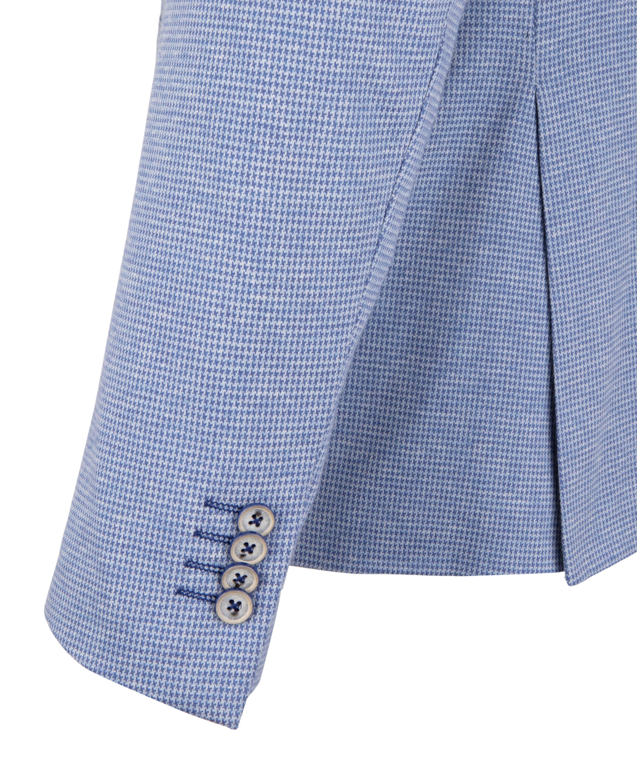 Adding to its charm is the navy leafy pattern adorning the linen inside and square pocket, infusing a subtle yet distinctive element into the design. The buttons, a noteworthy detail, accentuate the jacket's impeccable craftsmanship.