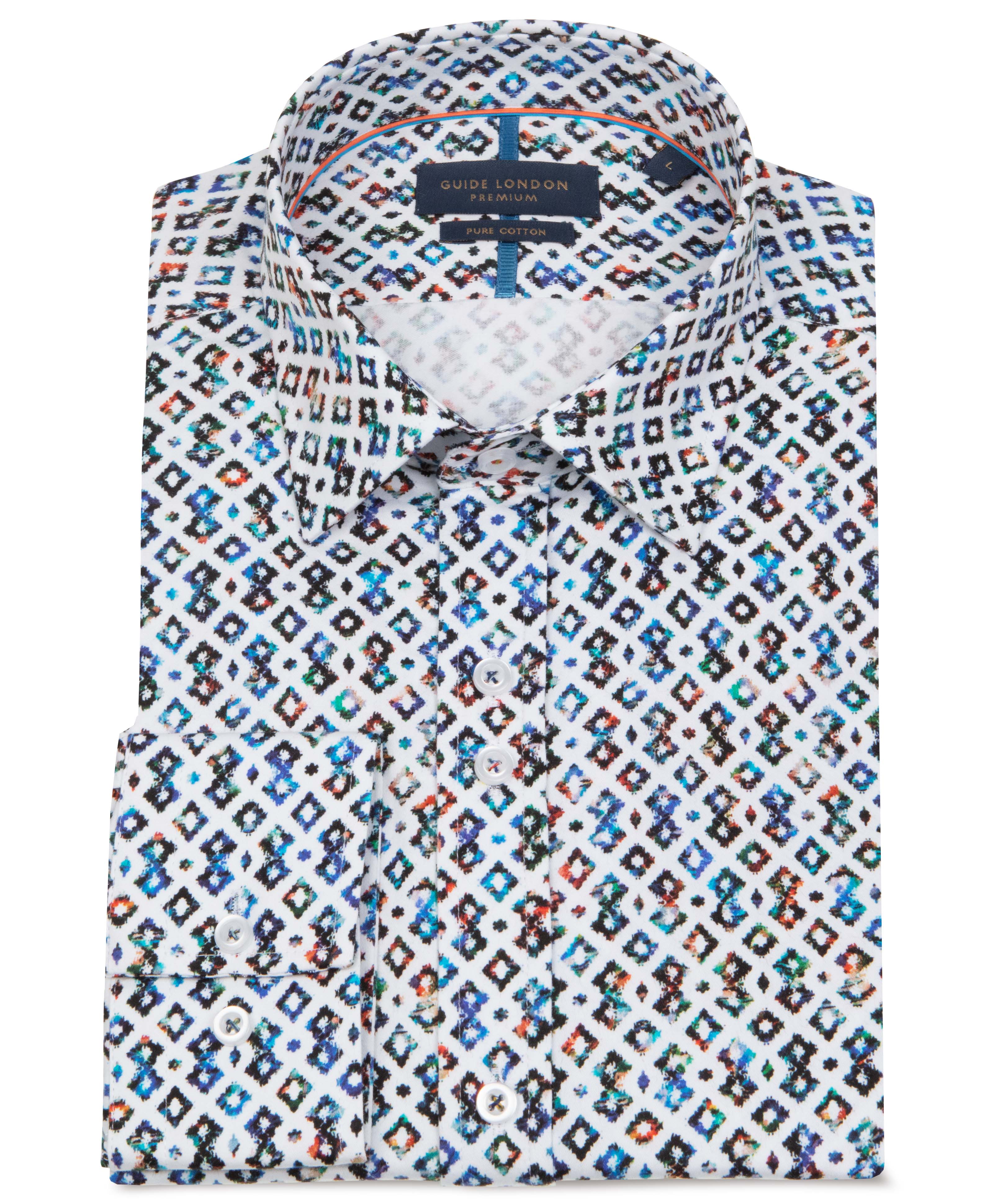 Get ready to turn heads with our signature Men's Cotton Geometric Shirt! Crafted from 100% cotton and featuring our exclusive sateen finish, this shirt is all about luxury and comfort rolled into one.