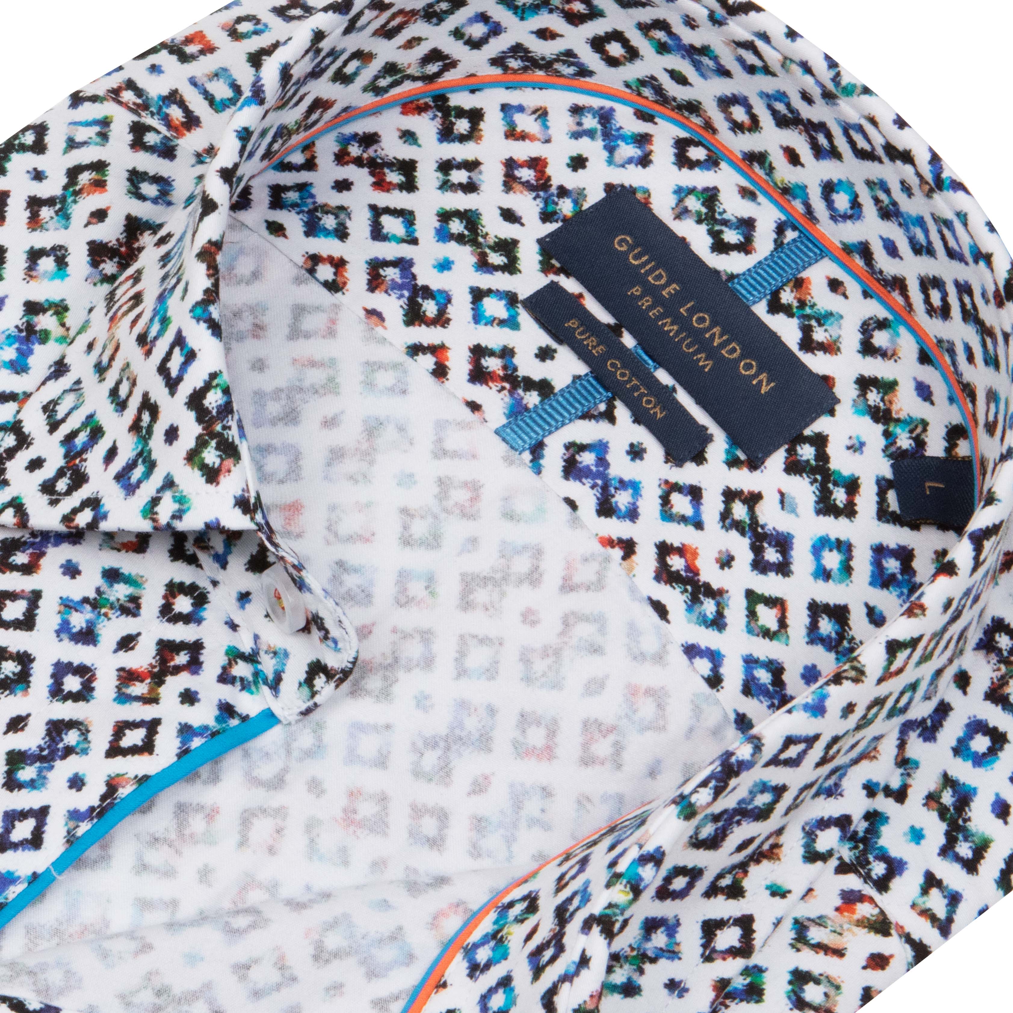 With its vibrant multi-coloured geometric pattern, this shirt brings a pop of fun and excitement to your wardrobe. Whether you're hitting the town or just chilling with friends, this versatile shirt guarantees you'll stand out in style.