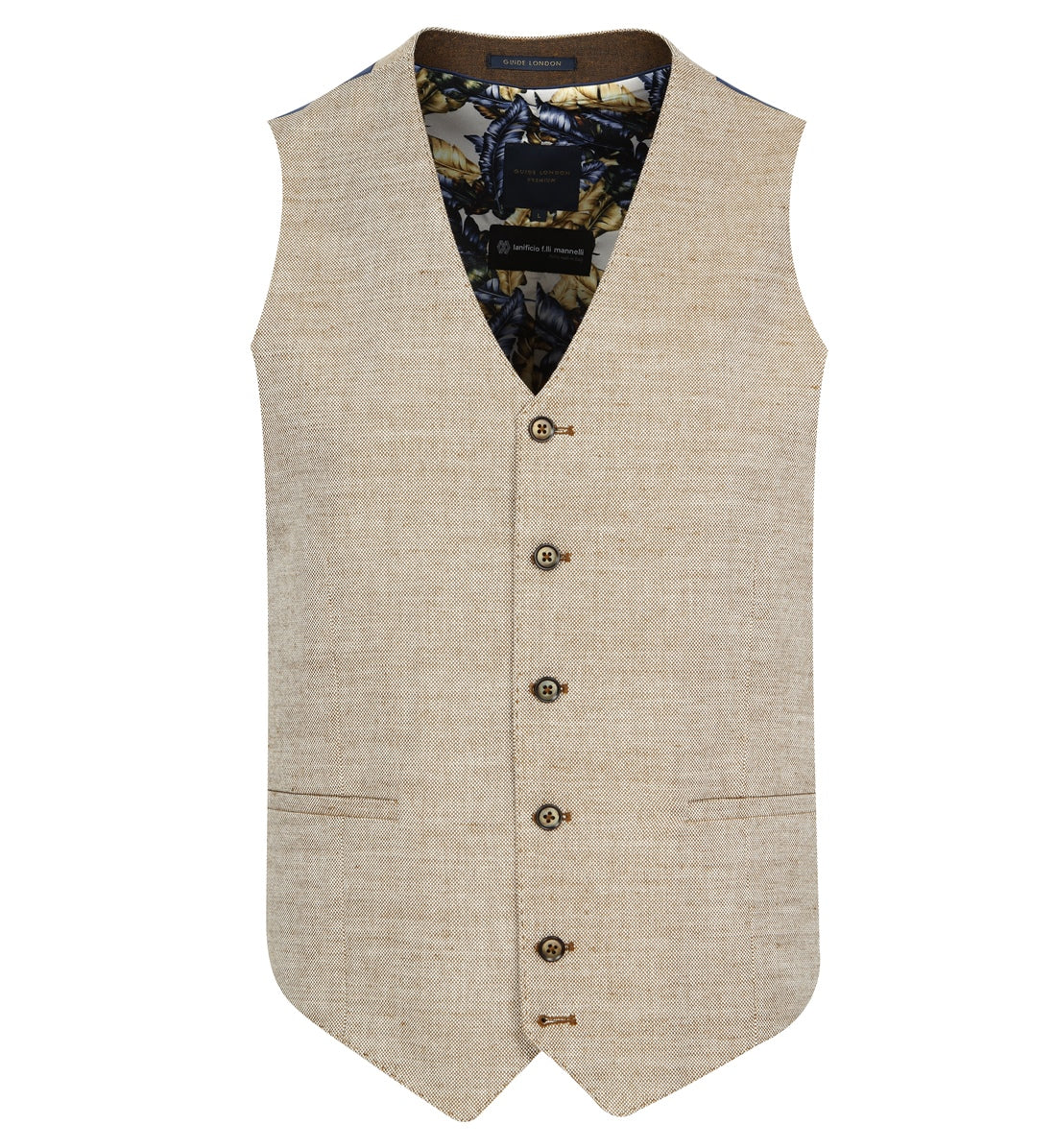 A lovely cool sand coloured summer waistcoat, made with an Italian linen blend fabric. Lining matches shirt 75335