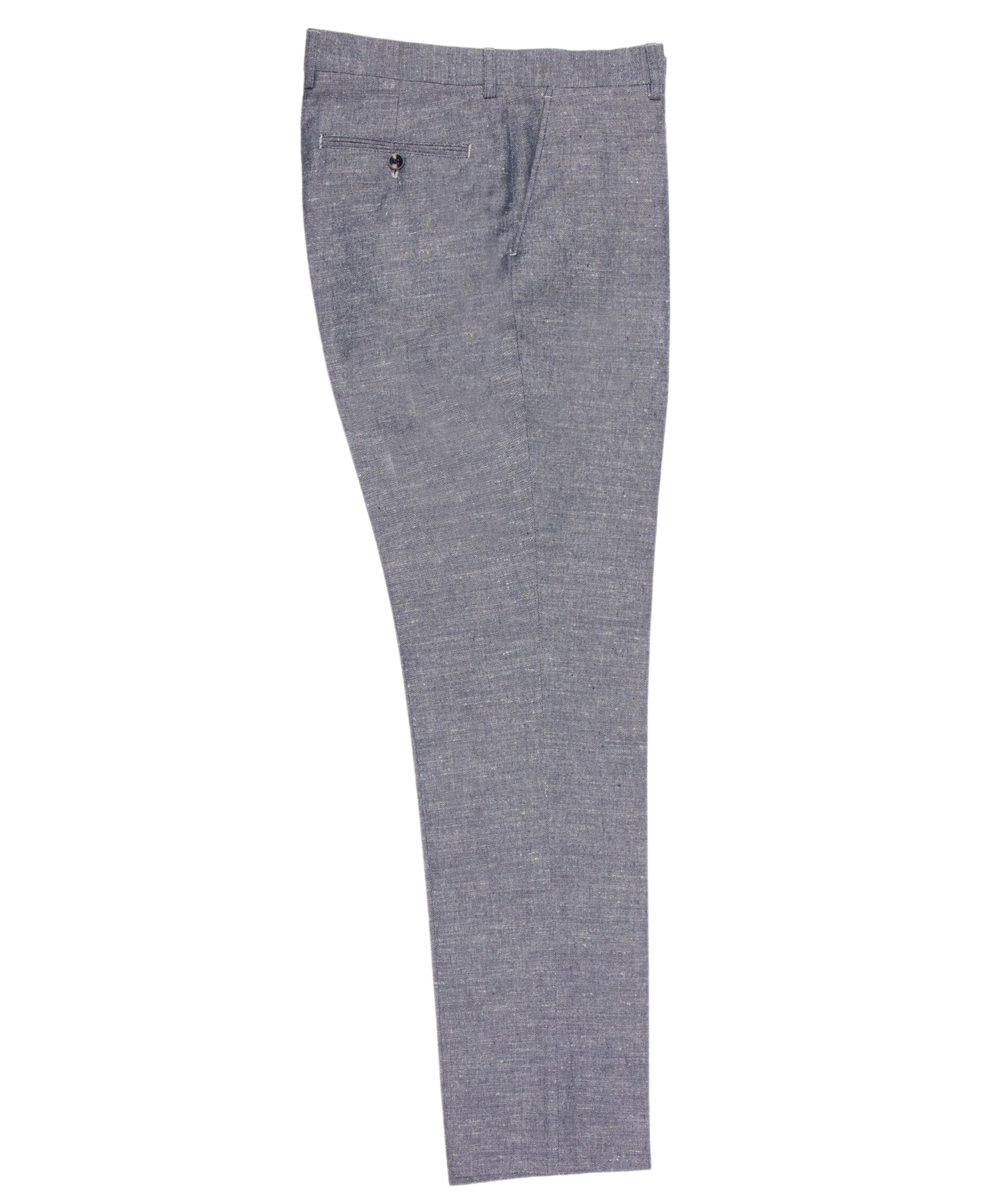The perfect fabric for those warmer months this sleek trouser is crafted in a light Navy Italian Cotton and Linen blend. It features slant side pockets, jet pockets at the back and a vibrant floral print lining inside. Style with the matching blazer, waistcoat and shirt for a total Guide look!