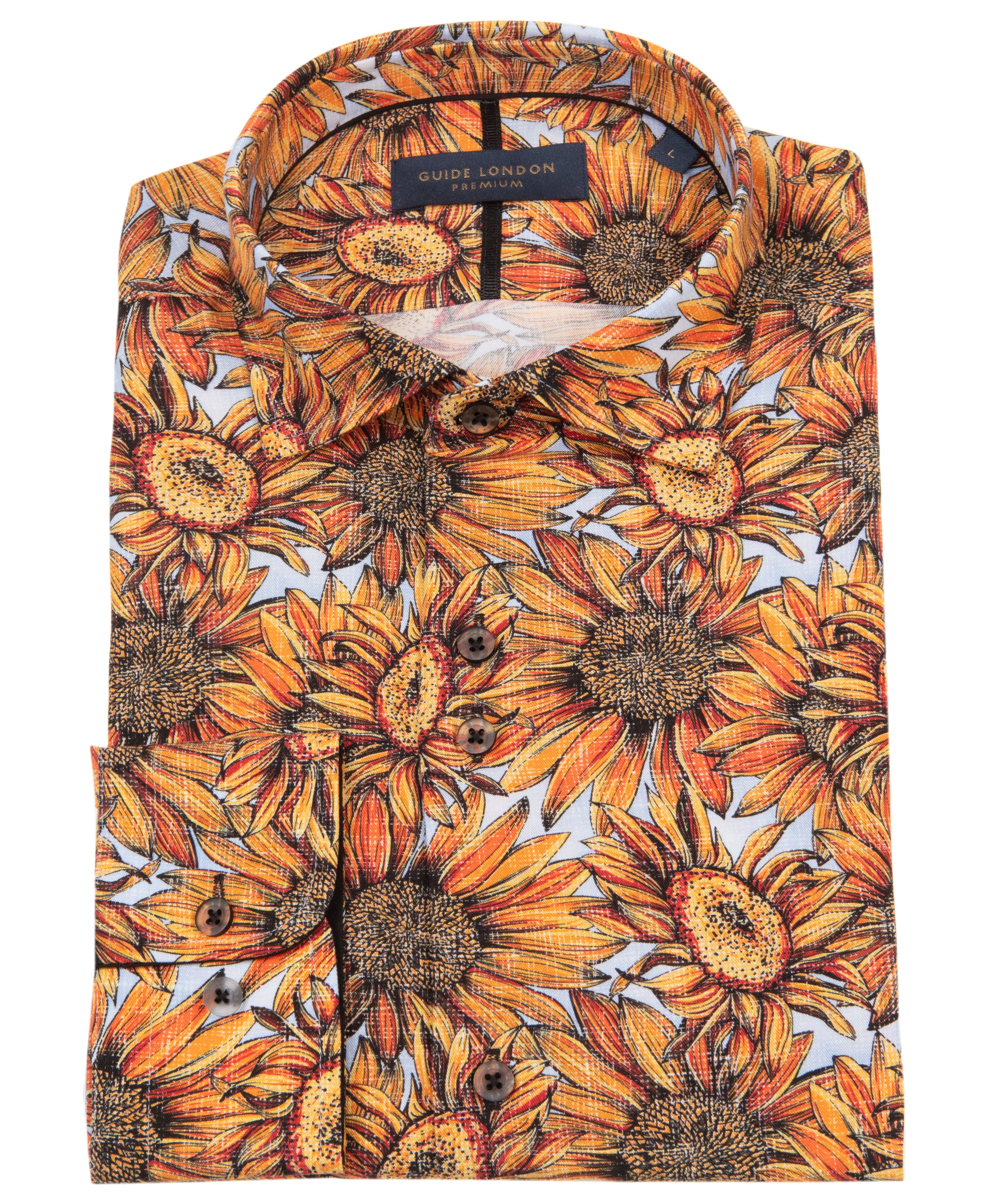 Step into the sunshine with our radiant long sleeve shirt made from 100% tencel fabric. Embrace the warmth of summer with vibrant sunflowers blooming in shades of yellow and orange against a soothing light blue backdrop. Crafted for comfort and style, this shirt is perfect for brightening up any day. Whether you're strolling through the park or enjoying a picnic in the sun, our sunflower shirt is sure to spread joy wherever you go.