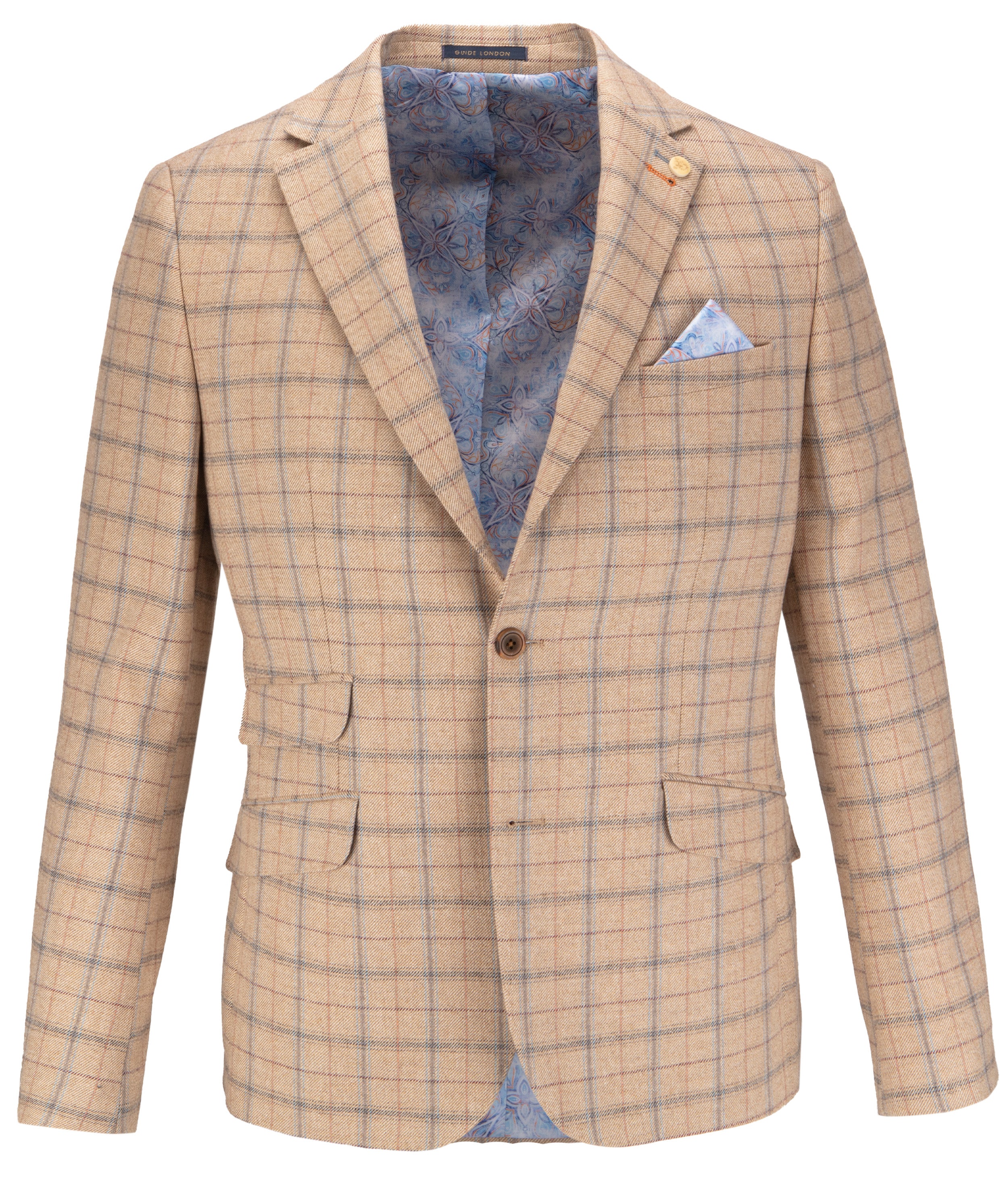 Elevate your outerwear collection with our Tan Check Jacket, expertly crafted from a premium wool and cotton blend that offers both warmth and style. Featuring a classic check pattern in rich tan tones, this jacket is the perfect layering piece for any occasion, seamlessly transitioning from formal events to smart-casual outings.