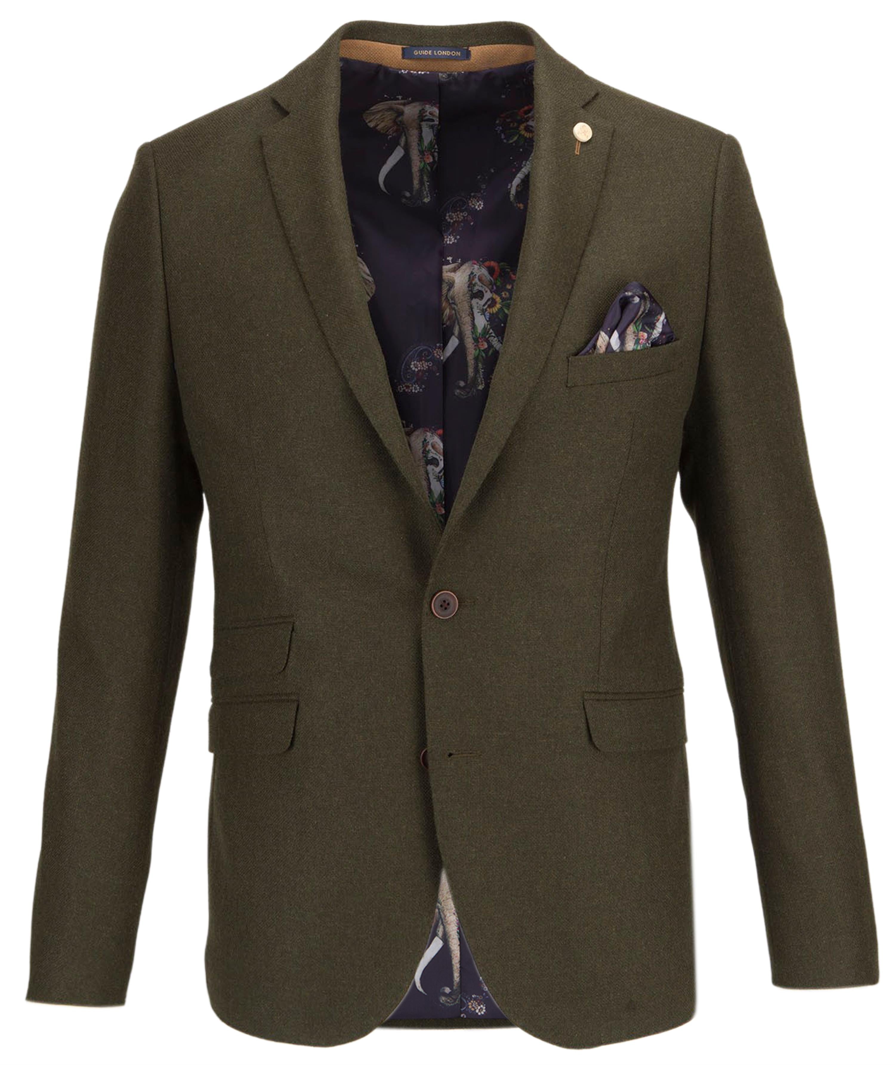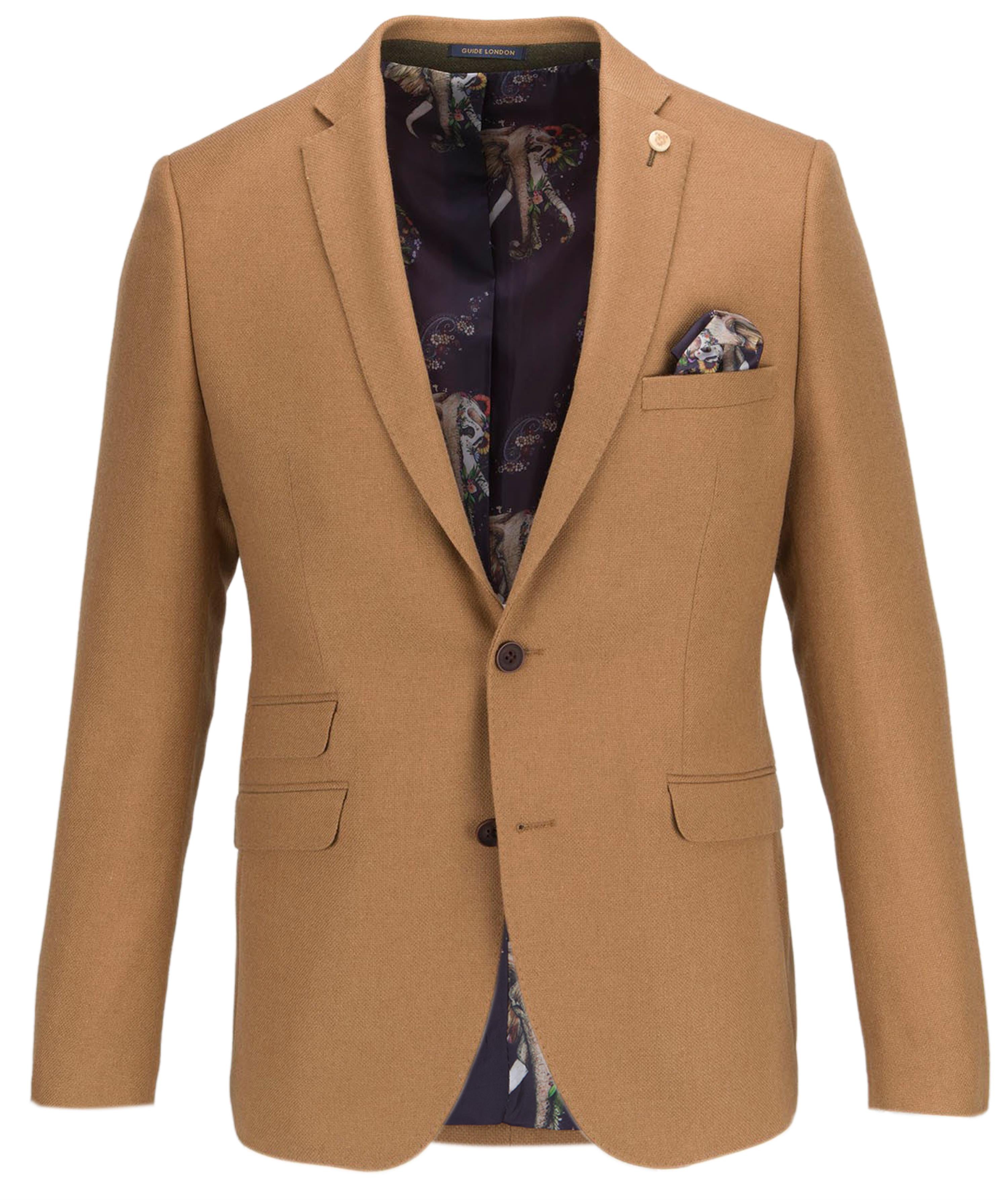 Why not opt for something a little different this season with the textured abstract print lined blazer? Featuring a triple pocket design with single breasted detailing, abstract elephant print lining, breast pocket with matching pocket square.