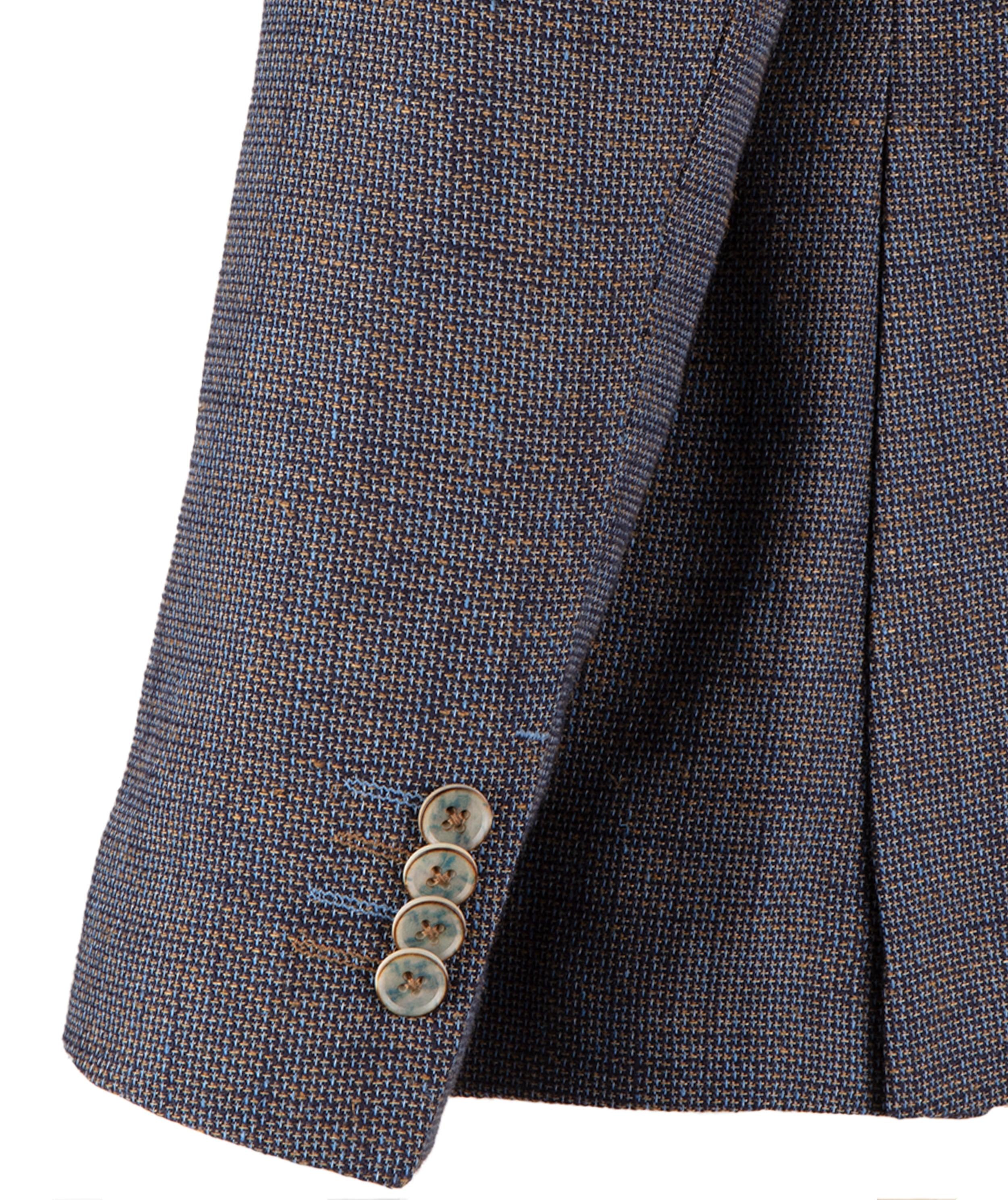Buggy lined, textured, and packed with detail - this fabric is a firm favourite.The buggy lining make the blazer lighter to wear, and the bright contrasting colours while impactful are more understated and contemporary. Soft mottled eggshell coloured buttons with a hint of blue, and welt front pockets give this blazer a cleaner look. Pair with matching print LS76470
