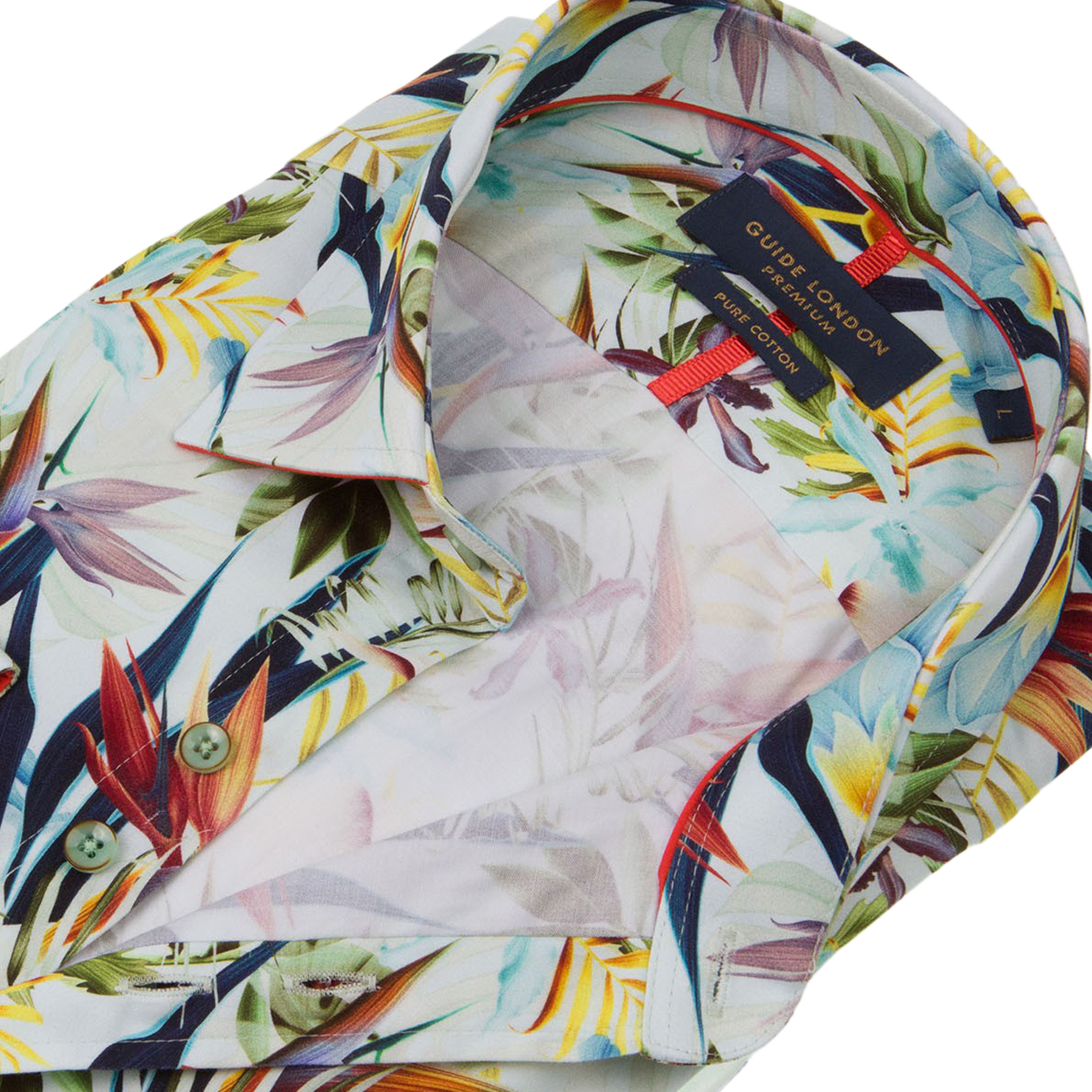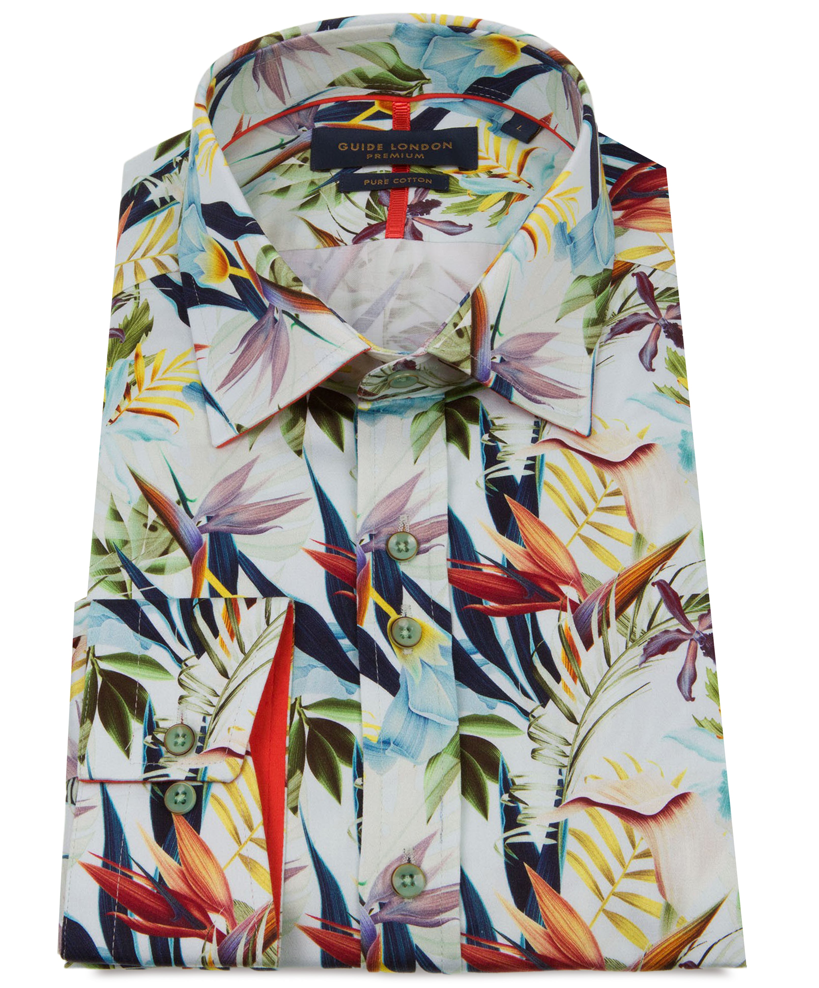 Whisk yourself away to a tropical paradise with this stunning floral design. Brightly coloured Bird of Paradise flowers nestle amongst boldly coloured foliage on our pure cotton sateen base. Piping in golden yellow and orange add the finishing touch.