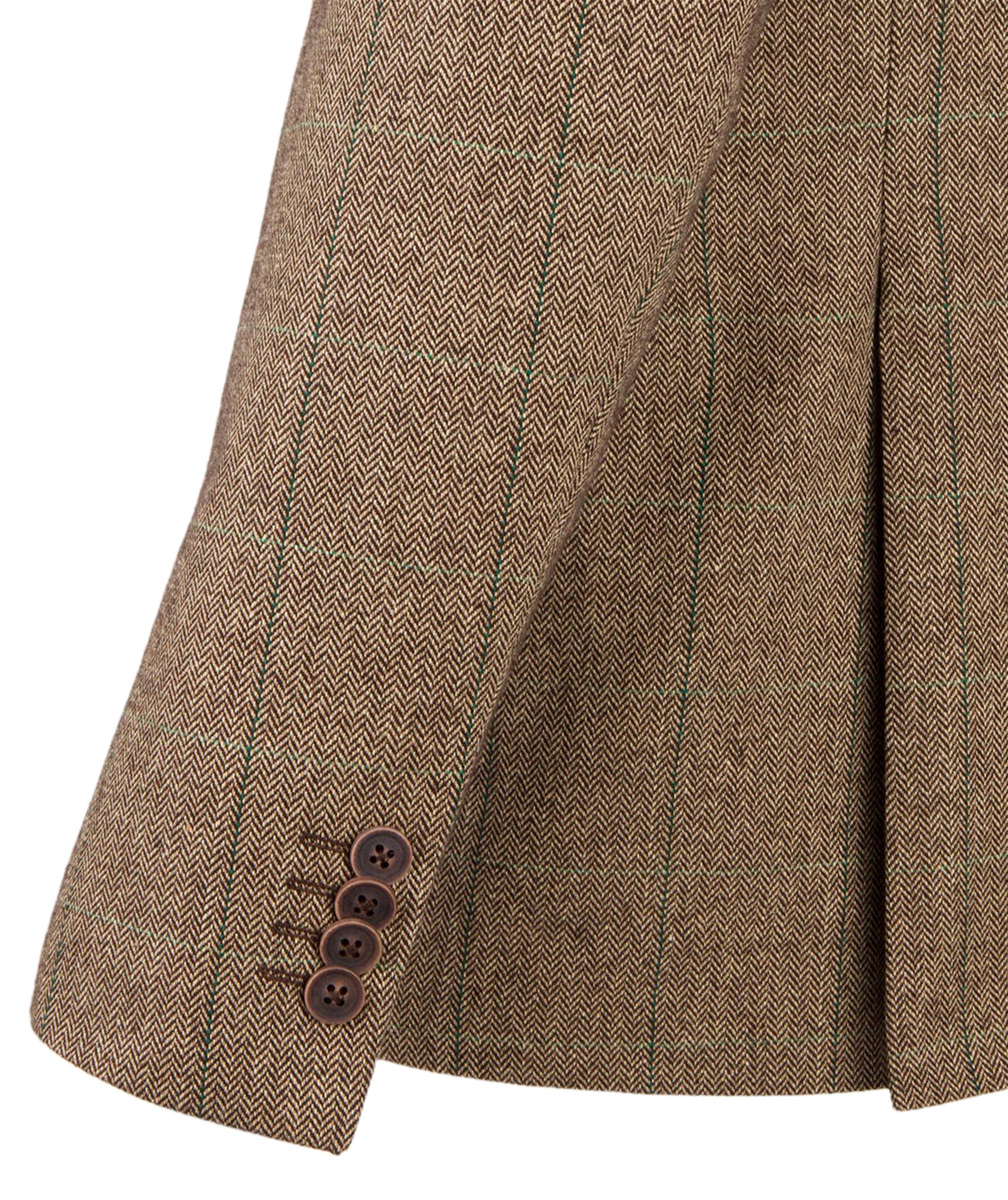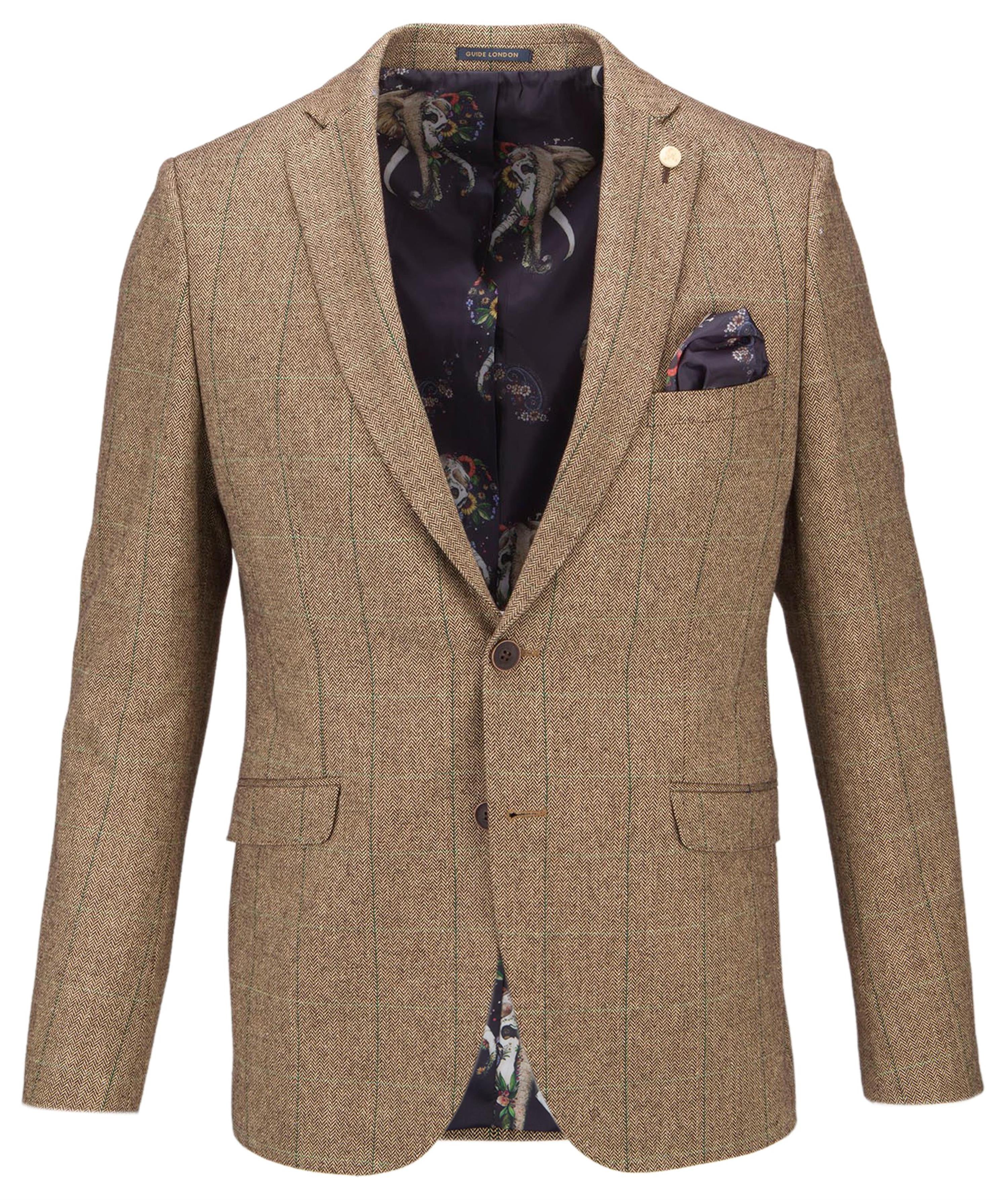 A smart blazer can elevate your personal style. Featuring a tweed material with a printed lining and matching pocket square, with a thick lapel and the signature Guide pin.