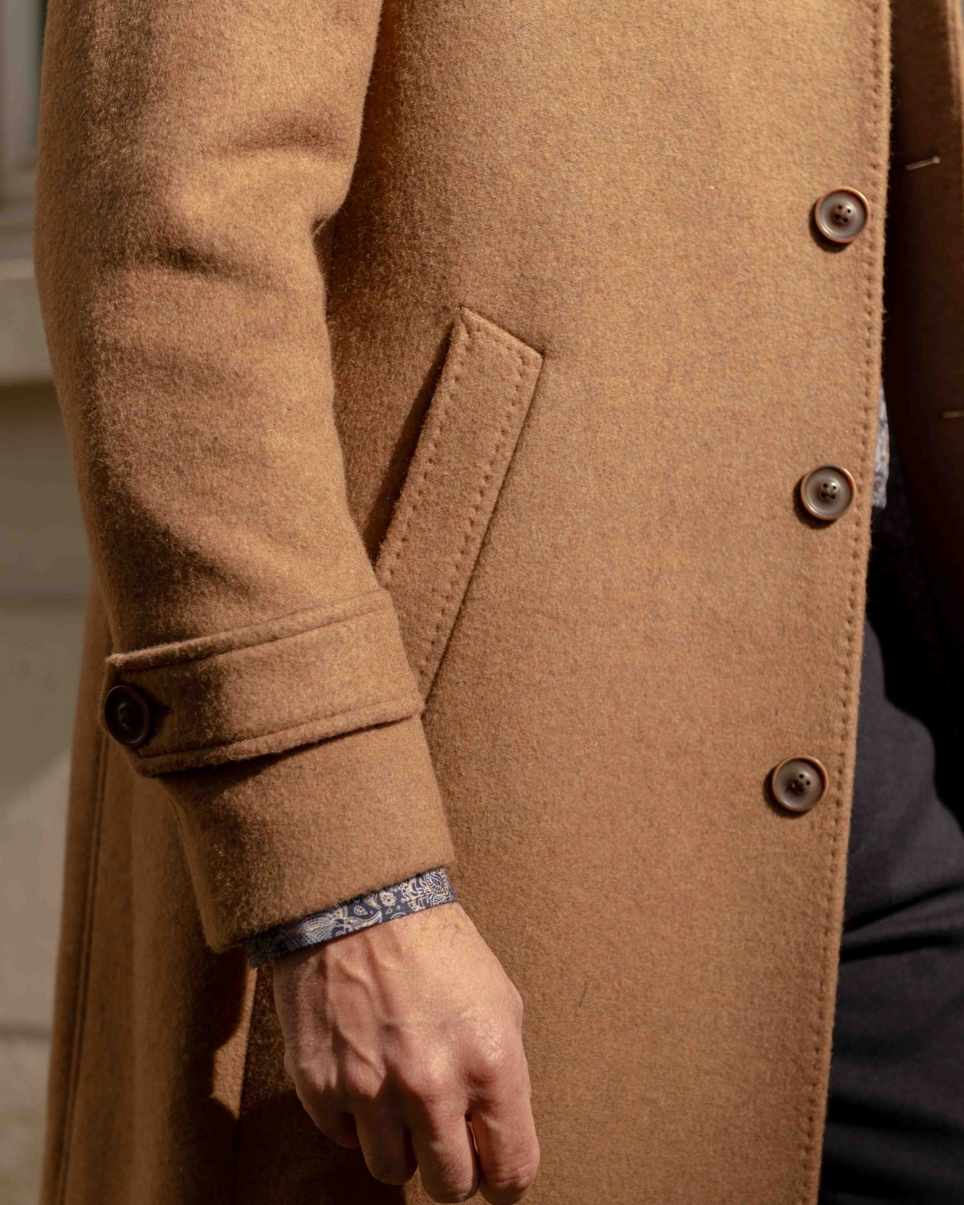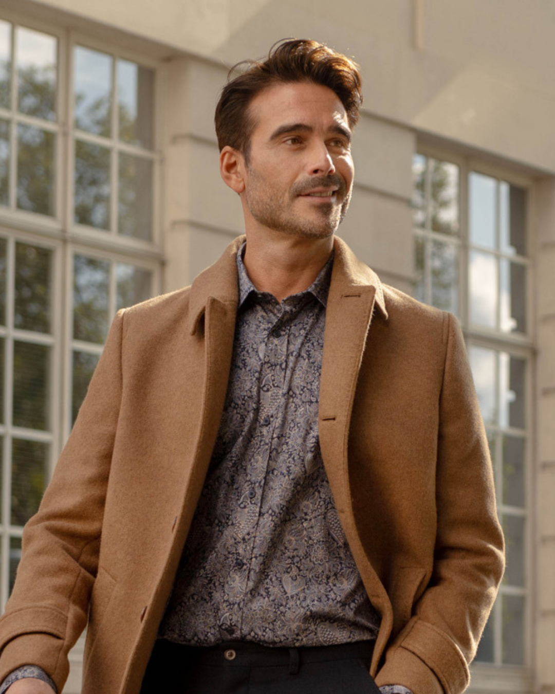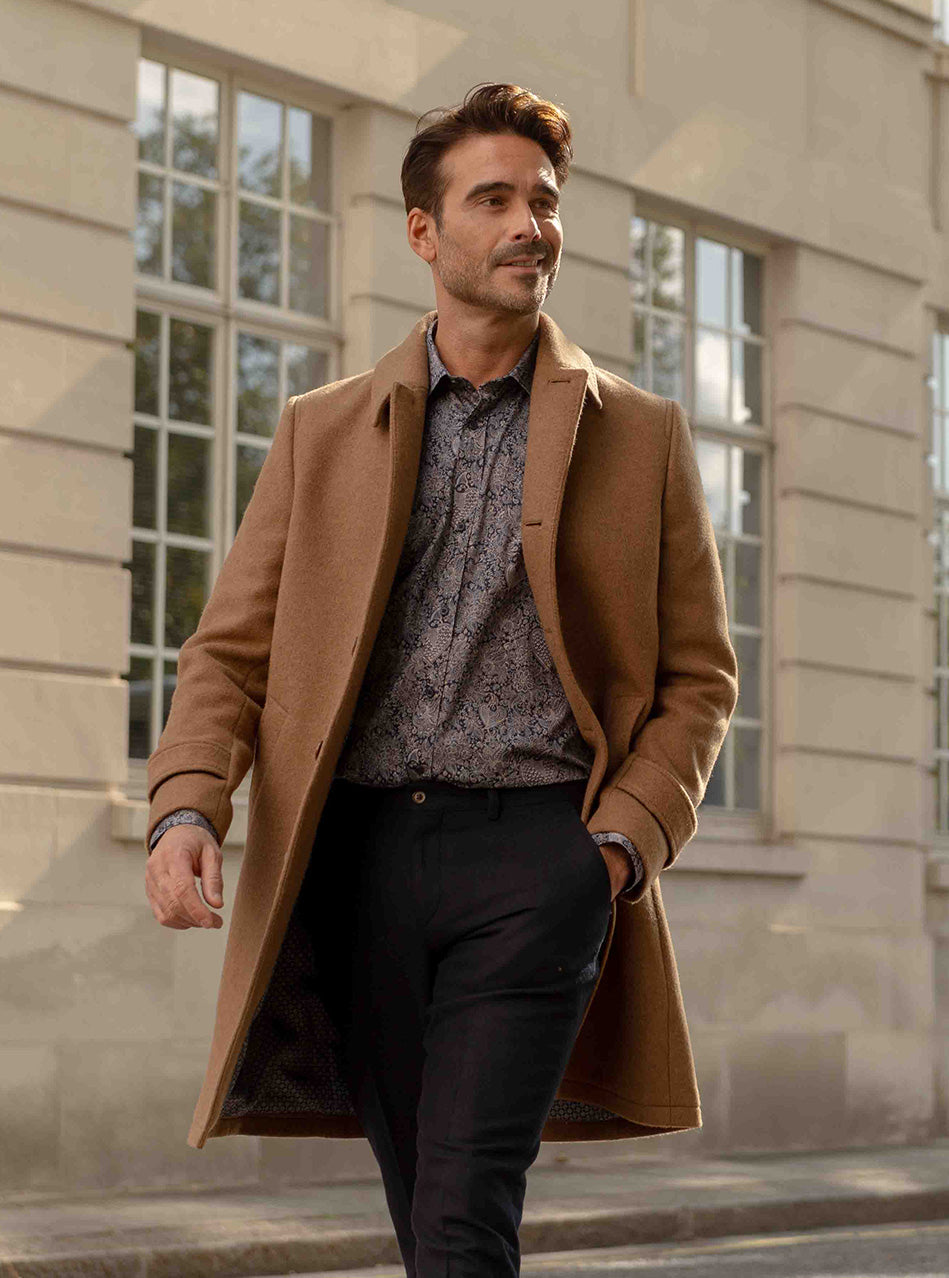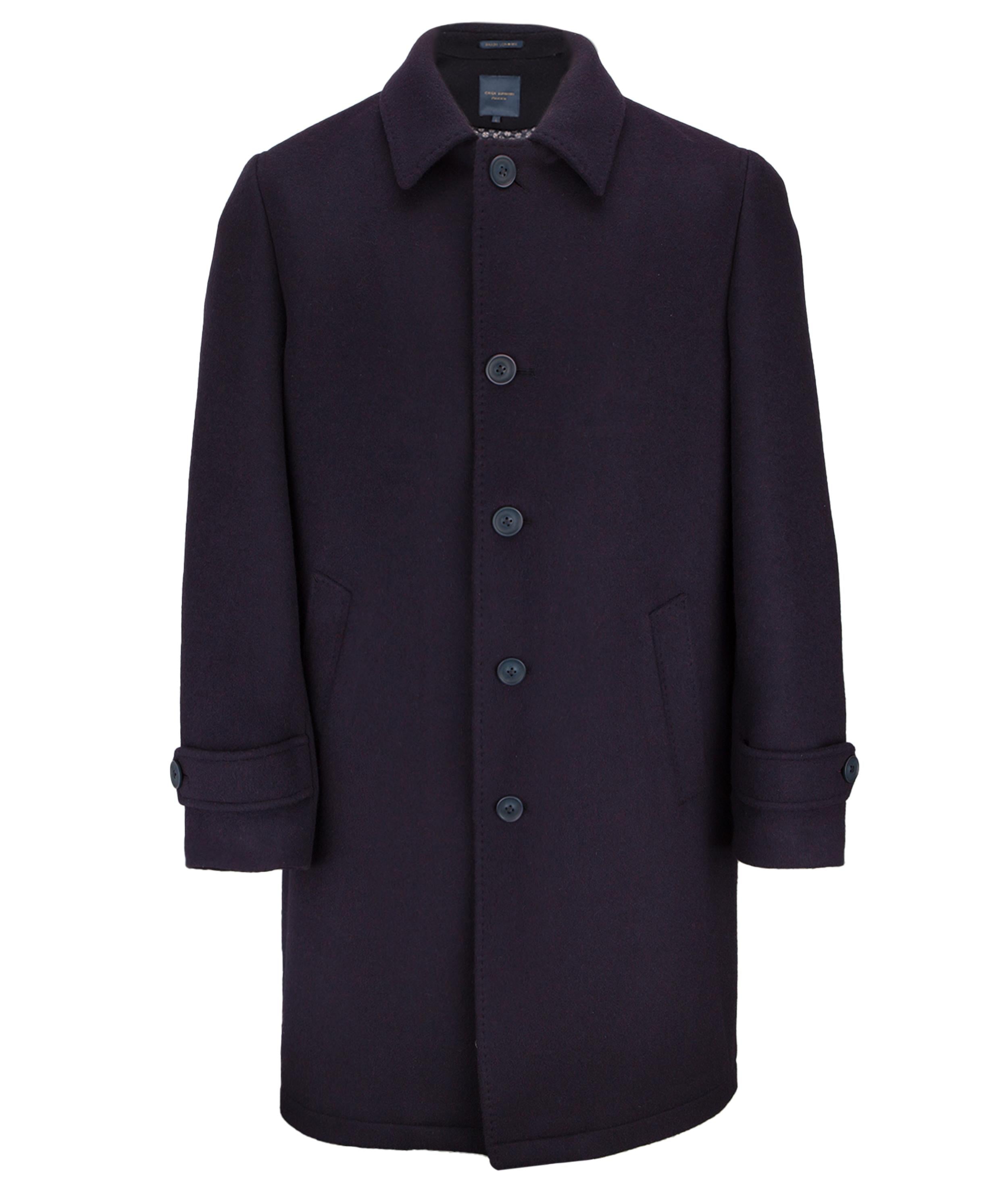 Go for effortless sophistication with the wool blend overcoat. Featuring a single breasted design with tonal corozo buttons, stitch detailing on the collar and pockets, sleeve epaulettes and finished in a long length.