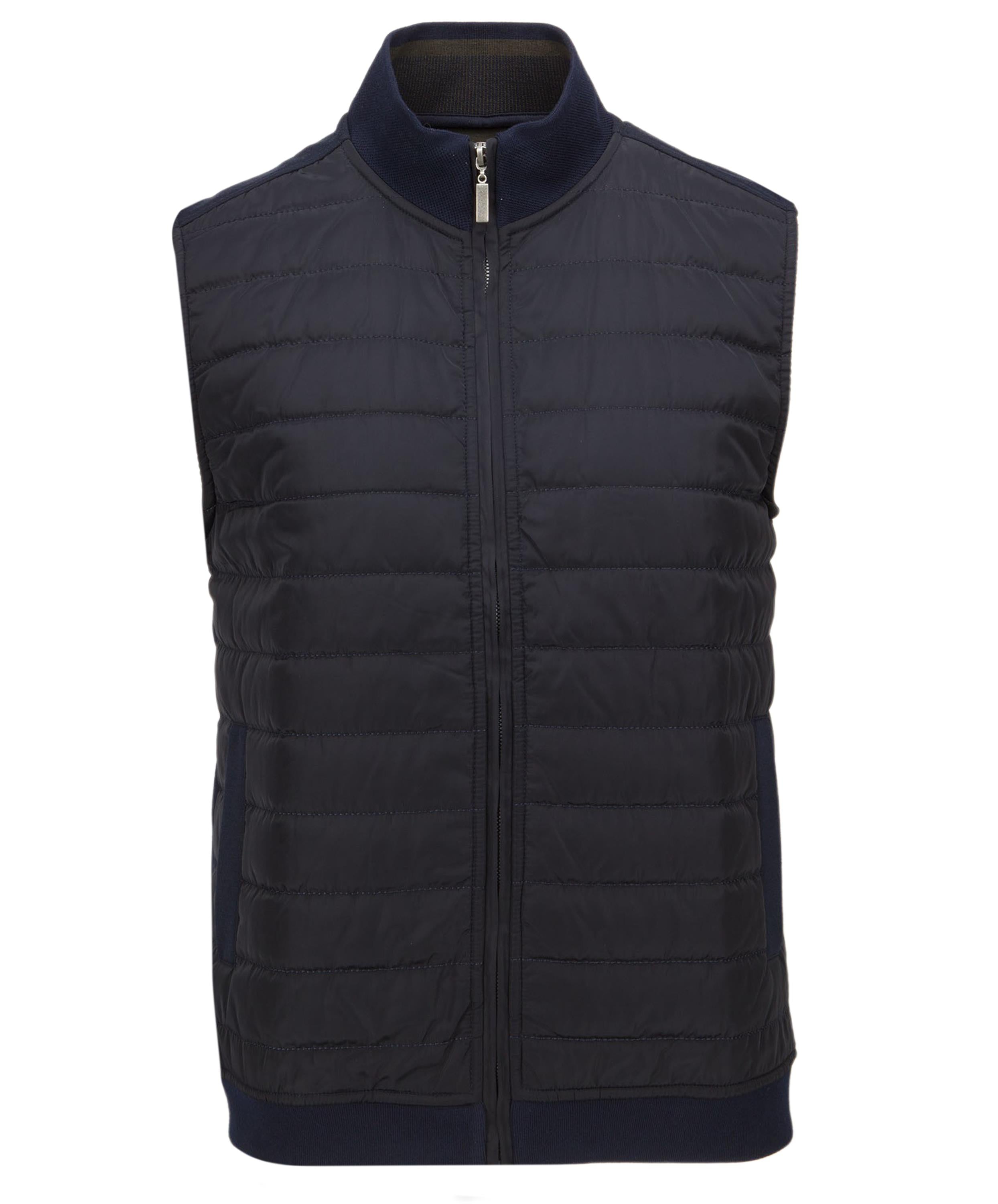 Smarten up your gilet game with this sleek and stylish zip through gilet. Featuring a smart jacquard collar with funnel neck design, zip through detailing and a quilted front.